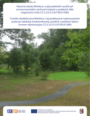 Naučná stezka Bolelouc a její praktické využití při environmentální výchově českých a polských dětí (registrační číslo CZ.3.22/3.3.07/09.01380) Ścieżka dydaktyczna Bolelouc i jej praktyczne wykorzystanie podczas edukacji środowiskowej czeskich i polskich dzieci (numer rejestracyjny CZ.3.22/3.3.07/09.01380) Projekt je spolufinancován z prostředků Evropského fondu pro regionální rozvoj (ERDF) „Překračujeme hranice“ Název projektu: Naučná stezka Bolelouc a její praktické využití při environmentální výchově českých a polských dětí (registrační číslo CZ.3.22/3.3.07/09.01380) Za obsah tohoto dokumentu je výhradně odpovědný Městys Dub nad Moravou“ Projekt jest współfinansowany ze środków Europejskiego Funduszu Rozwoju Regionalnego (ERDF) „Przekraczamy granice” Názwa projektu: Ścieżka dydaktyczna Bolelouc i jej praktyczne wykorzystanie podczas edukacji środowiskowej czeskich i polskich dzieci (numer rejestracyjny CZ.3.22/3.3.07/09.01380) „Wyłączną odpowiedzialność za treść tego dokumentu ponosi Městys Dub nad Moravou” Městys Dub nad Moravou s částmi Bolelouc a Tučapy leží na rozhraní okresů Olomouc, Přerov a Prostějov. V roce 1999 získala obec vlastní znak a prapor. Dne 10.10.2006 se z obce stal městys. Obec ve spolupráci s polskou partnerskou obcí Leśnica pořádá každoročně několik kulturních a sportovních aktivit, které obě obce prostřednictvím projektu „Naučné stezky Bolelouc” rozšíří o společnou environmentální výchovu dětí. Miasteczko Dub nad Moravou z dzielnicami Bolelouc i Tučapy leży na pograniczu powiatów Olomouc, Přerov i Prostějov. W 1999 r. gmina otrzymała swój własny herb i sztandar. W dniu 10.10.2006 r. gmina przekształciła się w miasteczko. Gmina, współpracując z gminą partnerską Leśnica, co roku organizuje kilka działań kulturalnych i sportowych. Obie gminy poszerzą te działania o wspólną edukację środowiskową dzieci wykorzystując w tym celu projekt pod tytułem „Ścieżki Dydaktyczne Bolelouc”. Dominantou městyse Dub nad Moravou je poutní chrám Očišťování Panny Marie postavený v polovině 18.století. Jde o nádherný vrcholně barokní chrám se dvěma 59 metrů vysokými věžemi. Poutní chrám Očišťování Panny Marie se začal stavět v době barokního mariánského kultu, na přelomu 17. a 18. století podle plánů architekta Pavla Malnovského. Již více než 200 let je cílem poutníků, kteří se sem přicházejí poklonit milostnému obrazu Panny Marie Dubské. Jedná se o nevelký dřevoryt vytvořený lidovým tvůrcem, na kterém je vyobrazena černá (byzantská) Madona s žehnajícím děťátkem na levé a s žezlem v pravé ruce. Po stranách barokní korunky jsou umístěny symboly Panny Marie - měsíční a sluneční zářící kotouče. Obraz byl údajně příčinou několika nevysvětlitelných uzdravení. Říká se také, že v noci obraz tajemně zářil. Zvláštní pozornost si zaslouží i vzácné varhany na kůru z roku 1768, které patří k několika málo zachovaným barokním nástrojům na Moravě. Svými rozměry patří kostel k největším chrámovým stavbám na Moravě. Punktem dominującym miasteczka Dub nad Moravou jest Sanktuarium Oczyszczenia Najświętszej Marii Panny zbudowane w połowie XVIII wieku. Chodzi o przepiękny kościół barokowy z dwoma wieżami o wysokości 59 metrów. Budowę sanktuarium pątniczego Oczyszczenia Najświętszej Marii Panny rozpoczęto w okresie barokowego kultu maryjnego na przełomie XVII i XVIII wieku według planów architekta Pavla Malnovskiego. Już ponad 200 lat jest celem pątników, którzy przychodzą do tego miejsca, by złożyć pokłon obrazu Miłosierdzia Panny Marii Dubskiej. Chodzi o mały drzeworyt autorstwa ludowego artysty, na którym wyobraził on Czarną (Bizantyjską) Madonnę z błogosławionym Dzieciątkiem Jezus trzymanym w lewej ręce i z berłem w prawej ręce. Po bokach koronki barokowej są umieszczone symbole Panny Marii – słoneczna i księżycowa aureola. Podobno ten cudowny sprawił, iż nastąpiło kilka niewytłumaczalnych uzdrowień chorych. Sądzi się również, że obraz emitował tajemnicze światło w nocy. Na szczególną uwagę zasługują drogocenne organy na chórze pochodzące z 1768 r., które należą do nielicznych instrumentów barokowych dochowanych na terenie Moraw. Pod względem swoich rozmiarów kościół ten jest zaliczany do największych budynków sakralnych na Morawach. Naučná stezka Bolelouc je vytvořena na pozemku, který byl z původní komunální skládky přetvořen na relaxační zónu pro obyvatele. Naučná stezka vede velmi zajímavým terénem, jež dal možnost vytvořit atraktivní vyhlídku na celý areál i vytvoření odpočinkového místa u vodní nádrže. Přístup na Naučnou stezku Bolelouc budou mít všichni návštěvnici bezplatně. Klíčovou aktivitou projektu je vytvoření Naučné stezky Bolelouc s tématickým zaměřením na vyskytující se flóru. Pozemek, který je rozdělen na čtyři téměř rovinné plochy s přilehlými svahy, je rozdělen stezkou v délce asi 1 km. Tato stezka je zhotovena položením kamenné drtě na hliněný plát a následně zpevněna 5 cm šotoliny. Součástí stezky je vytvoření vyhlídky, která je lemována dřevěným zábradlím z hranolů a latí, o délce 6 metrů. Podél stezky jsou osazeny lavičky se stolky pro odpočinek návštěvníků, a to například v rámci vyhlídky nebo kolem vodní plochy. Celá stezka je řešena bezbariérově, mohou ji tedy využít i tělesně handicapovaní lidé. Mimořádně hodnotná jsou také barokní sousoší svatého Floriána z roku 1733, svatého Jana Nepomuckého z roku 1739 a svatého Josefa z roku 1740. K dalším památkám patří kamenný kříž u kostela, kaplička svaté Markéty se studnou a socha prezidenta T.G.Masaryka odhalená v ro