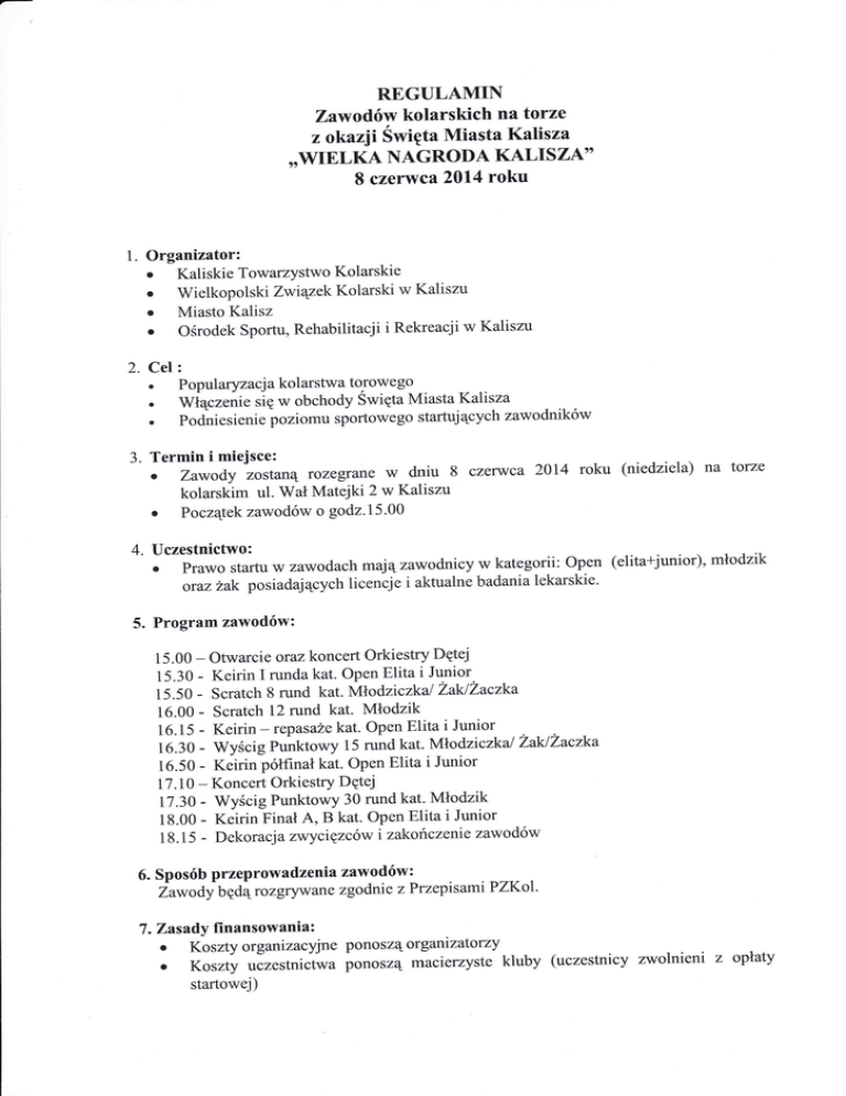 zawodów w-siedzibię WZKo1. Kalisz ul. Wał Matejki 2tel.62 - 157 23 4l