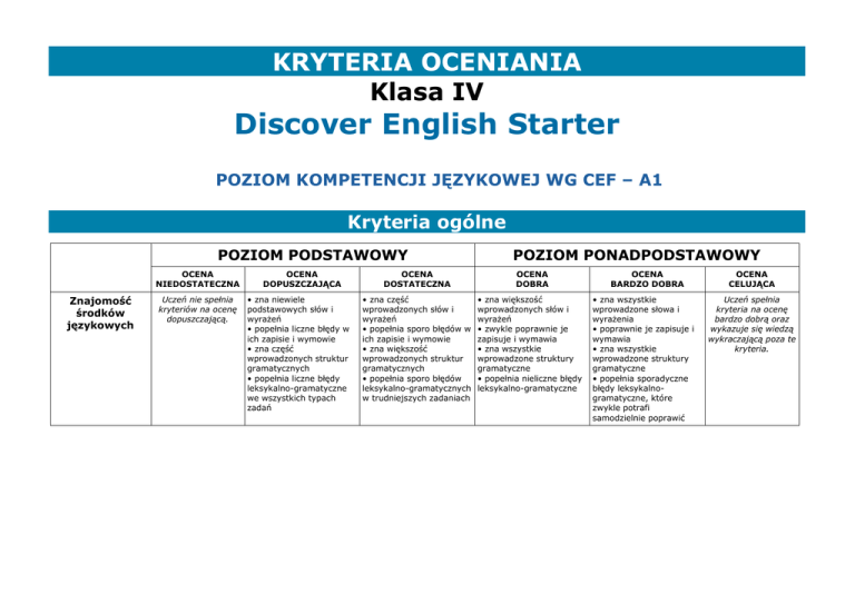 POZIOM KOMPETENCJI JĘZYKOWEJ WG CEF – A1