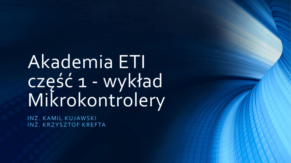 Akademia ETI część 1 - wykład Mikrokontrolery INŻ . K A MI L K U J AWSKI I NŻ . K R Z YSZ TO F K R E F TA Czym jest mikrokontroler? • Jest to układ scalony zawierający jednostkę centralną(CPU), pamięć RAM, pamięć programu oraz rozbudowane układy wejściawyjścia • Mikrokontroler stanowi użyteczny i całkowicie autonomiczny system mikroprocesorowy, nie wymagający użycia dodatkowych elementów, których wymagałby do pracy tradycyjny mikroprocesor Gdzie możemy spotkać mikrokontroler? Mikrokontroler vs. Mikroprocesor µP µC 32-64 bitowa, Dual/Quad Core Przeważnie 8 bitowa, ale także 16/32 bitowa RAM, ROM, port I/O, liczniki, przetworniki A/D, D/A i wiele innych Opcjonalnie, pamięć, przetworniki itd. PC, laptopy, tablety Sterowniki, kontrolery, kalkulatory, 4MHz-4GHz 32kHz-300MHz Przestrzeń adresowa Terabajty…(wirtualna) 2 - 8K wewn. 64K - 64M zewn. Pobór mocy 5 - 80W 100µW – 1W Koszt układu 30-500$ 1-10$ Motorola 68000, Intel x86 Intel 8051, Atmel AVR ALU Peryferia zewnętrzne Zastosowanie Szybkość zegara Przykłady Żródło: http://www.if.pw.edu.pl/~agatka/psm.html Architektura mikrokontrolera Zasoby mikrokontrolerów Rejestr – komórka pamięci, układ elektroniczny, który potrafi zapamiętać stan jednego bajta. Rejestr specjalny (Special Function Register – SFR) Oprócz rejestrów, które nie mają określonej z góry funkcji, każdy mikrokontroler posiada pewną liczbę rejestrów, których funkcja została zaprojektowana odgórnie przez producenta. Poszczególne bity tych rejestrów są dosłownie połączone z wewnętrznymi obwodami mikrokontrolera. Porty wejścia/wyjścia Rejestry podłączone do pinów (nóżek) mikrokontrolera. Funkcja pinów (wejście albo wyjście) jest również kontrolowana przez odpowiedni rejestr. Maksymalna wydajność prądowa portów w dokumentacji jest dzielona na wszystkie porty. Mogą posiadać rezystory podciągające (czasem również kontrolowane przez odpowiedni rejestr). Pamięć oraz CPU • Pamięci nieulotne Zawartość takiej pamięci nie ulega skasowaniu w momencie wyłączenia zasilania. Zaliczamy do nich między innymi pamięć ROM, EEPROM czy Flash. • Pamięci ulotne Zawartość pamięci ulega skasowaniu w momencie wyłączenia zasilania: SRAM, DRAM itp.. • Centralna jednostka obliczeniowa(Central Processing Unit) Serce mikrokontrolera, monitoruje i kontroluje wszystkie procesy wewnątrz mikrokontrolera. Magistrale komunikacyjne Magistrala(bus) – szyna komunikacyjna (zbiór linii, drucików) Zawarte w magistralach linie można podzielić na trzy grupy funkcjonalne: linie danych, adresów i sterowania. • Linie danych (data bus) są ścieżkami służącymi do przenoszenia danych między modułami systemu. Szyna danych składa się typowo z 8, 16 lub 32 oddzielnych linii, przy czym liczba linii określa szerokość tej szyny. Ponieważ w danym momencie każda linia może przenosić tylko 1 bit, z liczby linii wnika, ile bitów można jednocześnie przenosić. Szerokość szyny danych jest kluczowym czynnikiem określającym wydajność całego systemu. Jeśli na przykład szyna danych ma szerokość 8 bitów, a każdy rozkaz ma długość 16 bitów, to procesor musi łączyć się z modułem pamięci dwukrotnie w czasie każdego cyklu rozkazu. Magistrale komunikacyjne • Linie adresowe są wykorzystywane do określania źródła lub miejsca przeznaczenia danych przesyłanych magistralą. Jeśli na przykład procesor ma zamiar odczytać słowo (8, 16 lub 32 bity) danych z pamięci, umieszcza adres potrzebnego słowa na linii adresowej. Szerokość szyny adresowej determinuje maksymalną możliwą pojemność pamięci systemu. • Linii sterowania używa się do sterowania dostępem do linii danych i linii adresowych, a także do sterowania ich wykorzystaniem. Określa jaki rodzaj operacji ma zostać wykonany(np. odczyt czy zapis) Architektury mikrokontrolerów A R CHI T E K TUR A VO N N E U MA N NA • Jeden blok pamięci przechowujący jednocześnie dane oraz instrukcje programu; • Jedna 8-bitowa wspólna szyna danych. • Brak osobnych instrukcji dla różnych typów pamięci A R CHI T E K TUR A HA R WA R D Z K A • Dwie oddzielne szyny danych. Ponieważ kod programu (ROM) i dane (RAM) są rozdzielone, CPU może jednocześnie pobierać instrukcje i potrzebne dane. • Magistrala danych oraz programu mają różną długość, dlatego możliwe jest zastosowanie szerszej szyny np. dla pamięci programu