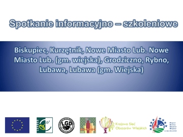 Lokalna Strategia Rozwoju Lokalnej Grupy Działania Ziemia Lubawska na lata 2014-2020 Cel ogólny nr 2: Zwiększenie atrakcyjności obszaru LSR. 2.1 Rozbudowa i poprawa standardu infrastruktury turystycznej, kulturowej, rekreacyjnej oraz poprawa estetyki miejscowości na obszarze LGD. 2.1.1 Projekty inwestycyjne infrastrukturalne zagospodarowujące przestrzeń publiczną. - zachowanie dziedzictwa lokalnego - budowa lub przebudowa ogólnodostępnej i niekomercyjnej infrastruktury turystycznej lub rekreacyjnej, lub kulturalnej. Lokalna Strategia Rozwoju Lokalnej Grupy Działania Ziemia Lubawska na lata 2014-2020 Cel ogólny nr 3: Wzmocnienie kapitału społecznego i włączenie społeczne mieszkańców obszaru LSR . 3.1 Wzmocnienie poczucia tożsamości regionalnej poprzez kultywowanie specyficznych dla regionu tradycji oraz promocja walorów i zasobów obszaru LGD; 3.1.1 Imprezy (także cykliczne) kultywujące tradycje budujące tożsamość regionu oraz Wydanie materiałów promocyjnych, publikacji, map oraz oznakowanie zabytków i zasobów turystycznych. 3.2 Wykreowanie , udoskonalanie i promocja produktów lokalnych (kulinarne, rzemiosło, kulturalne, turystyczne) zakładające zwiększenie współodpowiedzialności podmiotów społecznych za rozwój regionu; . 3.2.1. Przedsięwzięcia kulturalne – wystawy, konkursy, warsztaty, wizyty studyjne itp. 3.3 Podnoszenie wiedzy społeczności lokalnej w zakresie ochrony środowiska i zmian klimatycznych, także z wykorzystaniem rozwiązań OZE – czyli działalność związana z edukacją przyrodniczą. . 3.3.1 Aktywizacja, integracja i edukacja mieszkańców obszaru LGD Podejmowanie działalności gospodarczej Kto może składać wniosek? - Osoba fizyczna, jeżeli: • • • • • Jest obywatelem państwa członkowskiego Unii Europejskiej, Jest pełnoletnia, Ma miejsce zamieszkania na obszarze wiejskim objętym Lokalną Strategią Rozwoju 2014-2020 LGD Ziemia Lubawska (meldunek stały/ czasowy przynajmniej na czas realizacji projektu), Której został nadany numer identyfikacyjny w trybie przepisów o krajowym systemie ewidencji producentów, ewidencji gospodarstw rolnych oraz ewidencji wniosków o przyznanie płatności, (biuro terenowe ARiMR). Która nie podlega ubezpieczeniu społecznemu rolników (KRUS) z mocy ustawy i pełnym zakresie, chyba że podejmuje działalność gospodarczą określoną jako produkcja artykułów spożywczych lub produkcja napojów. . Zasady przyznawania i wypłaty pomocy na operacje W okresie 2 lat poprzedzających dzień złożenia WoPP (wniosku o przyznanie pomocy) beneficjent nie prowadził działalności gospodarczej podlegającej przepisom ustawy o swobodzie działalności gospodarczej z dnia 2 lipca 2004 r. i nie była wpisana do Centralnej Ewidencji i Informacji o Działalności Gospodarczej albo w rejestrze przedsiębiorców w Krajowym Rejestrze Sądowym. 1. Nie została mu dotychczas przyznana pomoc na operacje w tym zakresie. 2. Kwota wsparcia: zgodna z LSR: 50 000,00 PLN 3. Forma wsparcia -płatność ryczałtowa (premia) – dwie transze: I - 80%, II - 20%. Okres pomiędzy wpłatą pierwszej i drugiej transzy to okres, za który należy udokumentować rozdysponowanie premii finansowej zgodne z biznesplanem. Suma kosztów planowanych do realizacji operacji, ustalona z uwzględnieniem wartości rynkowej tych kosztów, jeśli nie jest niższa niż 70 % kwoty, jaką można przyznać na operację. 4. • Zasady przyznawania i wypłaty pomocy na operacje • • Preferowane grupy docelowe: Osoby w wieku do 30 roku życia lub Osoby w wieku powyżej 50 roku życia lub Kobiety lub Osoby z orzeczoną niepełnosprawnością lub Osoby bezrobotne Jeżeli ktoś nie mieści się w tej definicji dalej ma szansę otrzymać dofinansowanie! Zobowiązania: - Utrzymanie działalności przez okres 2 lat od dnia płatności końcowej Zakup wyłącznie nowych środków trwałych Konieczność utworzenia minimum jednego miejsca pracy w formie samozatrudnienia lub na podstawie umowy o pracę lub spółdzielczej umowy o pracę Osiągnięcie co najmniej 30% zakładanego w biznesplanie ilościowego lub wartościowego poziomu sprzedaży w pierwszym roku po otrzymaniu płatności końcowej (biznesplan poz. 3.2) Preferowane grupy docelowe: - Turystyka (w tym gastronomia, miejsca noclegowe, rekreacja, wypoczynek), Produkty lokalne, rzemiosło- rękodzieło, lokalne dziedzictwo (promowane projekty przyczyniają się do promowania, wytwarzania, kultywowania i promocji produktów lokalnych), Wdrażające technologie przyjazne środowisku/ przeciwdziałające zmianom klimatu, Przedsięwzięcia innowacyjne oraz zgodne z inteligentnymi specjalizacjami województwa warmińsko-mazurskiego. 1. – – – 2. – – – – 3. – – – Inteligentne specjalizacje województwa warmińsko - mazurskiego Żywność wysokiej jakości Produkcja artykułów spożywczych i napojów Specjalistyczna produkcja na potrzeby rolnictwa (np. produkcja maszyn, nawozów) Działalność usługowa związana ze sprzedażą, promocją i eksportem żywności Meblarstwo i przemysł drzewny Produkcja różnych wyrobów z drewna oraz korka Produkcja mebli Usługi projektowe, wzornictwo i design dla branży meblarskiej Produkcja innych wyrobów stolarskich (np. okna, drzwi etc.) Ekonomia wody Pobór, uzdatnianie i dostarczenie wody oraz odprowadzenie i oczyszczanie ścieków Transport wodny Produkcja jachtów i łodzi • . Branże wykluczone z dofinansowania: Pomoc nie przysługuje jeżeli działalność gospodarcza będąca przedmiotem tej operacji jest sklasyfikowana w przepisach rozporządzenia Rady Ministrów z dnia 24 grudnia 2007 r. w sprawie Polskiej Klasyfikacji Działalności (PKD) jako: 1.Działalność usługowa wspomagająca rolnictwo i następująca po zbiorach; 2.Górnictwo i wydobywanie; 3.Działalność usługowa wspomagająca górnictwo i wydobywanie; 4.Przetwarzanie i konserwowanie ryb, skorupiaków i mięczaków; 5.Wytwarzanie i przetwarz