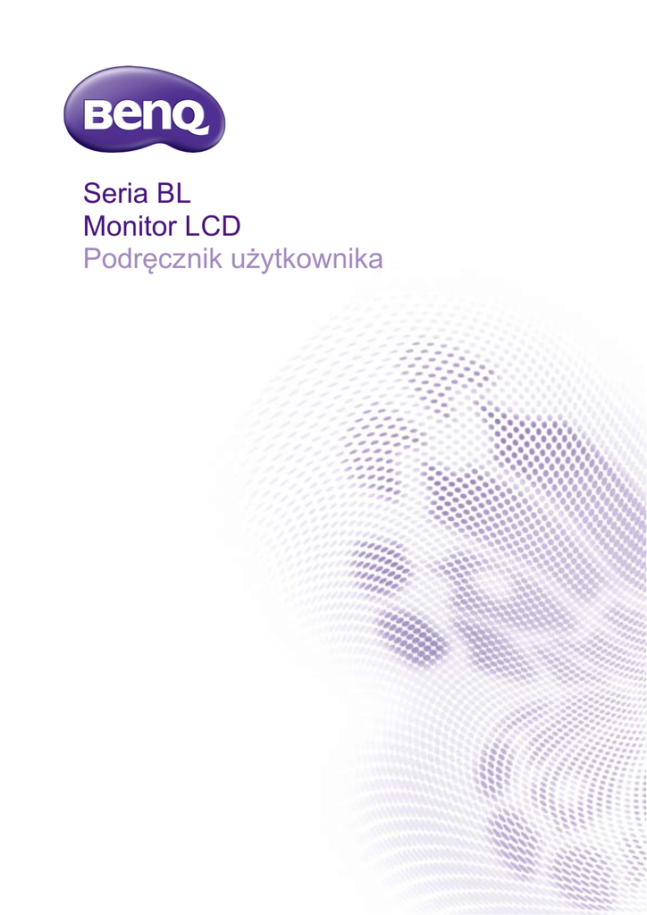 Seria BL Monitor LCD Podręcznik użytkownika Prawa autorskie Copyright © 2016 BenQ Corporation. Wszelkie prawa zastrzeżone. Reprodukowanie, przekazywanie, przepisywanie, zapisywanie w jakikolwiek sposób lub tłumaczenie na jakikolwiek język lub język programowania tej publikacji, w każdej formie i jakimikolwiek środkami elektronicznymi, mechanicznymi, magnetycznymi, optycznymi, chemicznymi, lub innymi jest zabronione bez wcześniejszej pisemnej zgody firmy BenQ Corporation. Ograniczenie odpowiedzialności Firma BenQ Corporation nie podejmuje zobowiązań prawnych, ani nie daje gwarancji, wyrażonych lub domniemanych, w odniesieniu do zawartości niniejszego dokumentu, a szczególnie unieważnia wszelkie gwarancje, tytuły sprzedaży, czy fakt spełniana wymagań dla szczególnych zastosowań. Co więcej, firma BenQ Corporation zastrzega sobie prawo do przeprowadzania aktualizacji niniejszej publikacji i wprowadzania zmian od czasu do czasu do zawartości tej publikacji bez wymogu informowania kogokolwiek przez BenQ Corporation o takich aktualizacjach czy zmianach. Na działanie funkcji zapobiegającej migotaniu mogą wywierać negatywny wpływ zewnętrzne czynniki np. jakość kabla, stabilność zasilania, zakłócenia sygnału lub niewłaściwe uziemienie — nie są to jedyne czynniki zewnętrzne, które mogą taki wpływ wywierać. (Dotyczy wyłącznie modelów z funkcją zapobiegania migotaniu.) Bezpieczeństwo zasilania Proszę przestrzegać poniższych przepisów bezpieczeństwa, aby zapewnić najlepszą jakość obrazu i długi czas użytkowania monitora. • Wtyczka zasilania służy do podłączenia urządzenia do zasilania prądem zmiennym. • Kabel zasilania służy do podłączania urządzeń do zasilania. Gniazdko zasilania powinno znajdować się blisko wyposażenia i być łatwo dostępne. • Ten produkt należy zasilać prądem o charakterystyce podanej na oznaczonej etykiecie. Jeśli nie jesteś pewny co do rodzaju dostępnego zasilania, skontaktuj się ze sprzedawcą lub lokalną firmą dostarczająca prąd. • Należy korzystać z atestowanych przewodów o parametrach równych H03VV-F lub H05VV-F, 2G lub 3G, 0,75mm2. Konserwacja i czyszczenie • Czyszczenie. Zanim rozpoczniesz czyszczenie pamiętaj, żeby wyłączyć monitor z zasilania. Oczyść powierzchnię monitora LCD przy pomocy gładkiej szmatki. Unikaj stosowania jakichkolwiek płynów, aerozolów, czy środków do czyszczenia okien. • Szczeliny i otwory z tyłu, lub u góry obudowy zapewniają wentylację. Nie wolno ich blokować, ani przykrywać. Monitora nie wolno umieszczać obok, lub nad kaloryferem, lub innym źródłem ciepła, lub w ciasnej zabudowie, jeśli nie zapewniono odpowiedniej wentylacji. 2 • Nigdy nie wciskaj jakichkolwiek przedmiotów, ani nie wlewaj żadnych płynów do tego urządzenia. Naprawy Nie podejmuj prób własnoręcznej naprawy monitora, ponieważ otwieranie lub zdejmowanie części obudowy może wystawić cię na wpływ niebezpiecznego napięcia lub inne ryzyko. Jeśli dojdzie do jakiegokolwiek przypadku nieodpowiedniego działania opisanego powyżej, lub dojdzie do wypadku, np. upuszczenia urządzenia, skontaktuj się z wykwalifikowanymi pracownikami serwisu, aby naprawić monitor. BenQ ecoFACTS BenQ has been dedicated to the design and development of greener product as part of its aspiration to realize the ideal of the "Bringing Enjoyment 'N Quality to Life" corporate vision with the ultimate goal to achieve a low-carbon society. Besides meeting international regulatory requirement and standards pertaining to environmental management, BenQ has spared no efforts in pushing our initiatives further to incorporate life cycle design in the aspects of material selection, manufacturing, packaging, transportation, using and disposal of the products. BenQ ecoFACTS label lists key eco-friendly design highlights of each product, hoping to ensure that consumers make informed green choices at purchase. Check out BenQ's CSR Website at http://csr.BenQ.com/ for more details on BenQ's environmental commitments and achievements. 3 Spis treści Prawa autorskie .............................................................................................. 2 Pierwsze kroki ................................................................................................. 6 Poznaj swój monitor ........................................................................................ 8 Widok z przodu (Dla modelu BL3200) ........................................................................ 8 Widok z tyłu (Dla modelu BL3200).............................................................................. 8 Widok z przodu (Dla modelu BL3201) ........................................................................ 9 Widok z tyłu (Dla modelu BL3201)............................................................................ 10 Podłączanie ............................................................................................................... 11 Jak zainstalować sprzęt monitora ................................................................. 13 Odłączanie stojaka oraz podstawy............................................................................ 19 Regulacja wysokości monitora .................................................................................. 21 Obracanie monitora ................................................................................................... 22 Regulacja kąta widzenia ........................................................................................... 23 Korzystanie z zestawu do montażu monitora ............................................................ 24 Jak wykorzystać maksimum możliwości monitora BenQ .............................. 25 Instalacja monitora w nowym komputerze ................................................................ 26 Rozwinięcie istniejącej instalacji monitora .................................