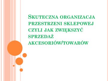 SKUTECZNA ORGANIZACJA PRZESTRZENI SKLEPOWEJ CZYLI JAK ZWIĘKSZYĆ SPRZEDAŻ AKCESORIÓW/TOWARÓW MERCHANDISING  ang. merchant – kupiec, merchandise – towar. Jest różnie określany, jako:  efektywne wykorzystanie powierzchni handlowej,  efektywna organizacja sprzedaży,  efektywne zarządzanie półką sklepową,  optymalna prezentacja towarów w jednostce handlowej,  szeroko stosowana i skuteczna komunikacja w punkcie sprzedaży [Szulce, 1998; Grzesiuk, 1999; Rozwadowska, 2000]. MERCHANDISING  to część operacji marketingowych stanowiąca pewną filozofię działania, która do komunikacji z klientami posługuje się przestrzenią handlową.  Działania te wywierają znaczący wpływ na ostateczną decyzję zakupu towaru przez konsumenta. System ten najczęściej bazuje na procesie decyzyjnym budującym lojalność klientów: DOSTRZEGŁEM KUPIŁEM SPRÓBOWAŁEM ZOBACZĘ PONOWNIE KUPIĘ PONOWNIE ZAWSZE BĘDĘ KUPOWAŁ  zgodnie “łatwo z zasadą: zauważalne, łatwe do wzięcia”. PROFESJONALNY MERCHANDISING Określa się jako zbiór działań według siedmiu zasad: 1. właściwa marka, 2. we właściwym miejscu, 3. we właściwym czasie, 4. z właściwą ceną, 5. we właściwej ilości, 6. we właściwych warunkach, 7. we właściwy sposób. PROFESJONALNY MERCHANDISING  Jak zachęcić klienta do wejścia do danej placówki handlowej?  Jak zwrócić uwagę klienta na dany produkt?  Jakie bodźce wpływają na decyzję zakupu?  Jak pozyskać lojalnego klienta? UWARUNKOWANIA Wykorzystanie powierzchni sprzedaży prowadzące do takiego ustawienia asortymentu, które daje klientowi możliwość zobaczenia jak największej oferty sklepu, czego wynikiem jest zwiększenie wartości dokonanych przez niego zakupów. PODSTAWOWE „Z ZŁOTE ZASADY” MERCHANDISINGU Zasada lewej strony  zgodnie z logiką widzenia klienta, osoby praworęczne wchodzące w alejkę utworzona przez 2 regały sklepowe najpierw popatrzą w lewą stronę. „Z ZŁOTE ZASADY” Zasada znajomości przeciętnego klienta; Zasada złudzeń optycznych  nie należy ustawiać małych produktów w otoczeniu dużych, gdyż będą się one wydawać jeszcze mniejsze; „Z ZŁOTE ZASADY” Zasada „minimum jeden face”  porządek na półkach zwiększa zysk;  ekspozycja musi sprawiać wrażenie obfitości, nie może być braków na półce; „Z ZŁOTE ZASADY”  Zasada czystości i niezniszczonych produktów  klient nie kupuje tego, czego nie widzi  Zasada najlepszej półki… ZARZĄDZAJ SWOJĄ PÓŁKĄ I OSIĄGAJ KORZYŚCI:  zwiększaj sprzedaż ogólną  lub produktów kluczowych  zwiększaj pozytywną percepcję klienta  i zwiększaj zaufanie  zmniejszaj wątpliwości pracowników dotyczących doboru asortymentu i sposobu ekspozycji  oszczędzaj czas klienta i sprzedawcy ROZMIESZCZANIE TOWARÓW Przy rozmieszczaniu towarów na meblach i ekspozyturach pamiętaj o rentowności; rentowności  ...towary, na których osiągasz podstawowy zysk powinny otrzymywać lokalizacje „królewskie” ROZMIESZCZANIE TOWARÓW  ... pamiętaj o rotacji; rotacji towary szybko rotujące muszą mieć więcej miejsca i dostępniejsze fragmenty regałów  ... pamiętaj o cenie - towary drogie nie mogą być eksponowane w taki sam sposób jak towary tanie, ponieważ klient nie zaakceptuje różnicy w cenie DOBRE MIEJSCE ZMUSZA KLIENTÓW BY: •kupili teraz •poszli do sklepu •zadzwonili by nabyć albo, aby uzyskać więcej informacji KLIENT Pamiętaj o naturalnym zachowaniu konsumenta, który zwykle:  ... kieruje się i patrzy na lewo  ... chętniej sięga po produkt prawą ręką  ... jego oko rejestruje zaledwie ok. 30 cm półki KLIENT Uwzględniaj wartość obszarów percepcji klienta:  ... najatrakcyjniejszy poziom regału znajduje się na wysokości 125-180 cm „strefa wzroku”  ... dobrym miejscem jest też „strefa zasięgu ręki” - poziom 80-120 cm  ... najgorsze notowania ma dół regału… TZW. „EFEKT PÓŁKI” ZASADA NAJLEPSZEJ PÓŁKI – POZIOM OCZU (POZIOM WIDZENIA: 125–180 CM) PÓŁKA: Na najwyższych półkach powinny znaleźć się artykuły o:  niewielkich rozmiarach  wysokiej jakości i cenie REGUŁY LOKALIZACJI TOWARÓW NA PÓŁCE SKLEPOWEJ Reguła Wielkości Opakowań Reguła Pionowych Bloków Kategorii Dla klienta RZYKŁADY kierującego się EKSPOZYCJI smakiem, a nie W OBRĘBIE OWOCOWYCH marką produktu P Dla klienta, BLOKOWEJ SOKÓW który najpierw wybiera markę, REGAŁU a potem smak, czy rodzaj produktu Źródło: Borusiak B., 2005: Merchandising. Akademia Ekonomiczna w Poznaniu, Poznań, s. 61–62. PÓŁKA Na najniższych , a zatem najmniej atrakcyjnych półkach można umieszczać:  towary ciężkie, ciężkie o dużych gabarytach łatwo je stamtąd wziąć i klient nie musi się obawiać, że spadną mu na głowę  artykuły przyciągające wzrok, wzrok np. posiadające bardzo atrakcyjne, kolorowe opakowanie PÓŁKA - NAJNIŻSZA  artykuły o wysokim wskaźniku średniej dziennej sprzedaży, sprzedaży dzięki czemu unikniesz częstego dokładania towaru na inne półki  stosuj powtórzenia na najmniej dostępnych półkach (najniższej i najwyższej) stosuj powtórzenia ekspozycji z półek, które je poprzedzają  zwiększaj liczbę wybranego produktu, bo... każde powielenie twarzy produktu (opakowania) zwiększa sprzedaż WIZERUNEK Stosuj zasady wpływające na poprawę wizerunku sklepu i wzrost sprzedaży:  zakup towarów może przebiegać w sposób sprawny tylko w warunkach przejrzystej ekspozycji  produkty niemarkowe nie powinny być ustawione z produktami markowymi  kategorie towarów należy organizować w tzw. bloki  każdy produkt powinien być ustawiony „twarzą” do klienta ASORTYMENT w ramach asortymentu nie powinny być mieszane kategorie produktowe  nie należy mieszać ze sobą w tym samym miejscu kilku towarów - każdy rodzaj towaru musi stać oddzielnie  w sklepie powinna być dostępna i wyeksponowana jak największa ilość kategorii produktowych marki URZĄDZENIA EKSPOZYCYJNE  