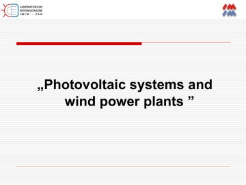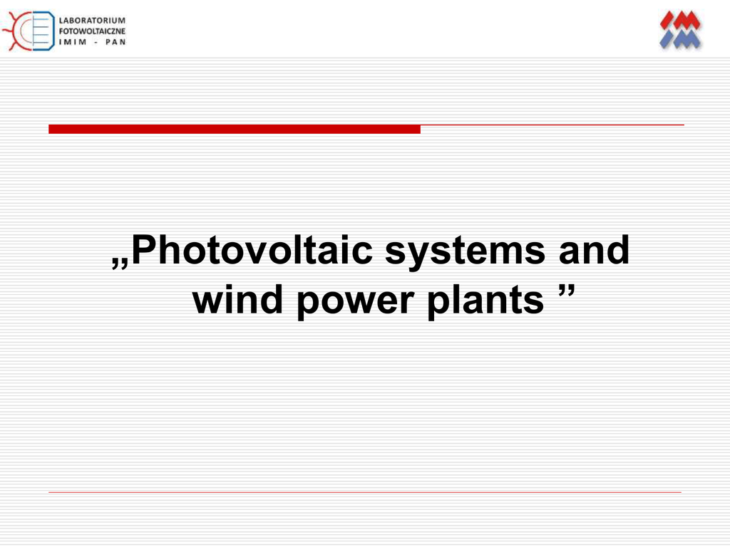 Photovoltaic systems and wind power plants