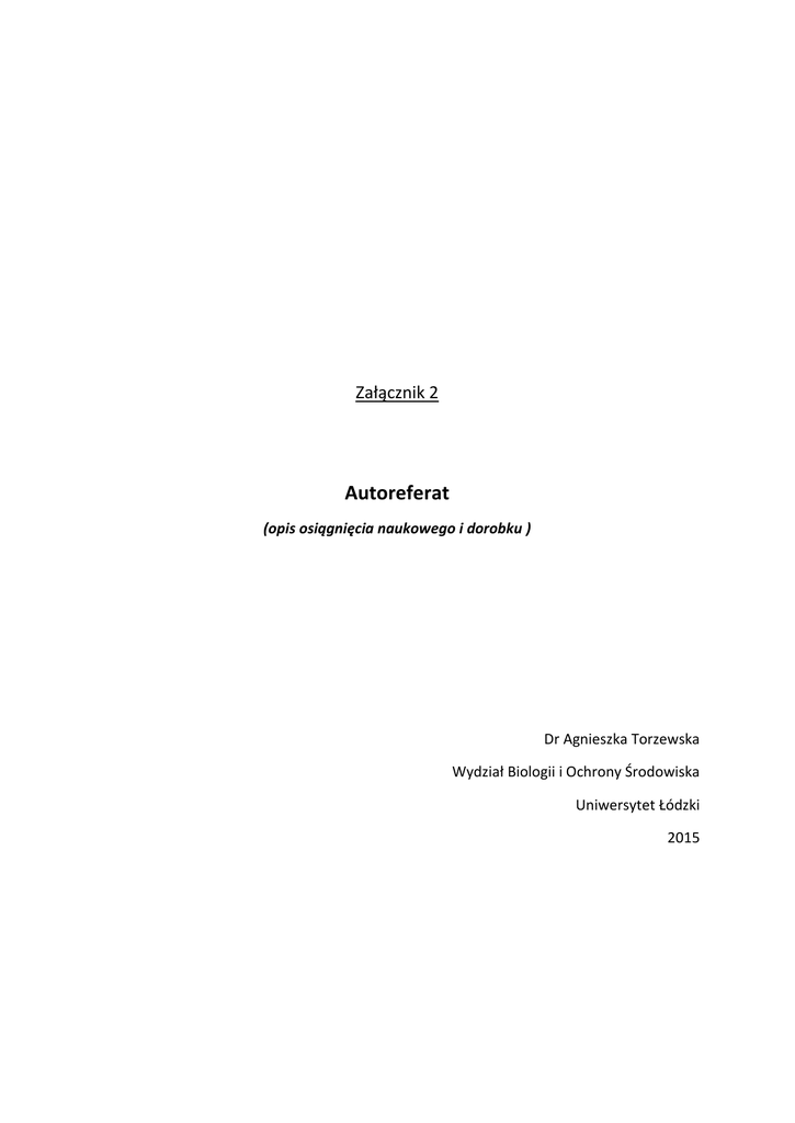Autoreferat - Wydział Biologii i Ochrony Środowiska