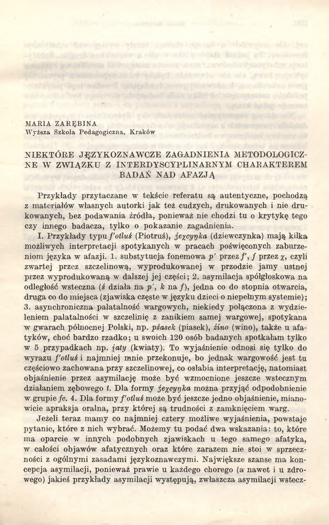 językowych pochodzących z dotychczasowych opracowań afazji. W związku z tym