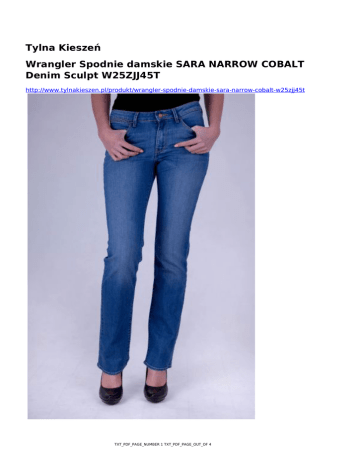 Tylna Kieszeń Wrangler Spodnie damskie SARA NARROW COBALT Denim Sculpt W25ZJJ45T http://www.tylnakieszen.pl/produkt/wrangler-spodnie-damskie-sara-narrow-cobalt-w25zjj45t TXT_PDF_PAGE_NUMBER 1 TXT_PDF_PAGE_OUT_OF 4 Producent Wrangler Cena 139.00 PLN Cena netto 113.01 PLN L-Model Jade 0 Jade Zip 0 Logger 0 Lynn Skinny 0 Lynn Straight 0 Marion Straight 0 Marlin 0 Scarlett 0 Lynn Narrow 0 Capri 0 Hotpant 0 Jade Seasonal 0 Scarlett Cropped 0 Skyler 0 Pixley 0 L-Fason Bardzo dopasowana nogawka (Skinny Fit) 0 Prosta nogawka (Straight Fit) 0 Lekko rozszerzana nogawka (Boot Fit) 0 Luźna nogawka (Loose Fit) 0 Krótkie spodenki 0 Komfortowa nogawka (Ralaxed Fit) 0 Rozszerzana nogawka (Boot Cut) 0 Boyfriend 0 W-Model Bridget 0 Corynn 0 Courtney 0 TXT_PDF_PAGE_NUMBER 2 TXT_PDF_PAGE_OUT_OF 4 Drew 0 Molly 0 Sara 0 Shennan 0 Tina 0 Sara Narrow 1 Jaclyn 0 W-Fason Bardzo dopasowana nogawka (Skinny) 0 Dopasowana nogawka (Slim) 0 Regularna nogawka (Regular) 1 Lekko rozszerzana nogawka (Bootcut) 0 Krótkie spodenki 0 Numer katalogowy Numer katalogowy W25ZJJ45T Stan Niski 0 Średni 0 Wysoki 1 Kolor Ciemny jeans 0 Pośredni jeans 1 Jasny jeans 0 Kolorowy 0 Czarny 0 Nazwa koloru Nazwa koloru COBALT Wytarcie Mocne 0 Pośrednie 0 Delikatne 1 Brak 0 TXT_PDF_PAGE_NUMBER 3 TXT_PDF_PAGE_OUT_OF 4 Skład materiału Bawełna 98% Elastan 2% Stretch Jest 1 Stretch Deluxe 0 Super Stretch 0 Stretch Power 0 Brak 0 Live in Denim 0 TXT_PDF_PAGE_NUMBER 4 TXT_PDF_PAGE_OUT_OF 4