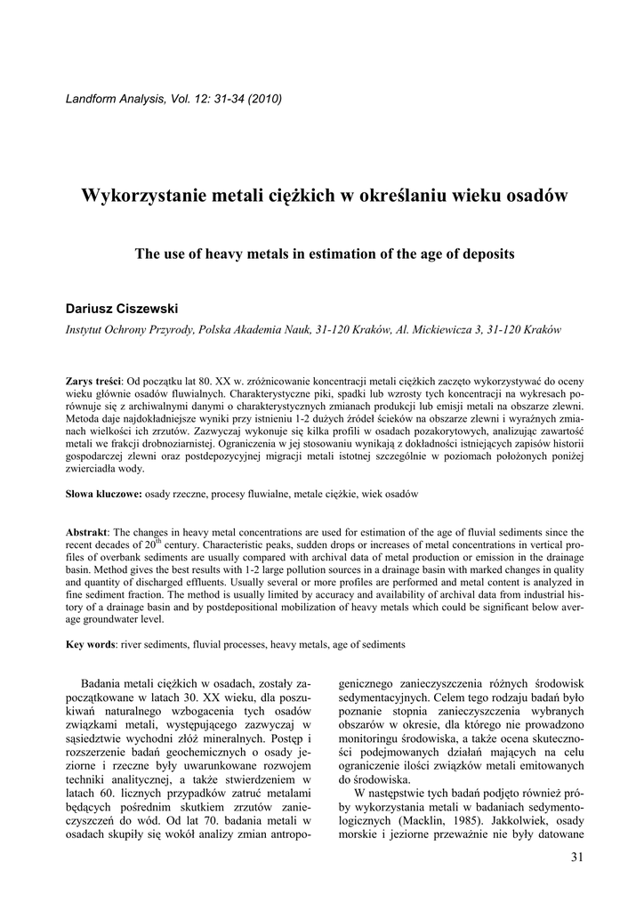 Wykorzystanie metali cięŜkich w określaniu wieku osadów