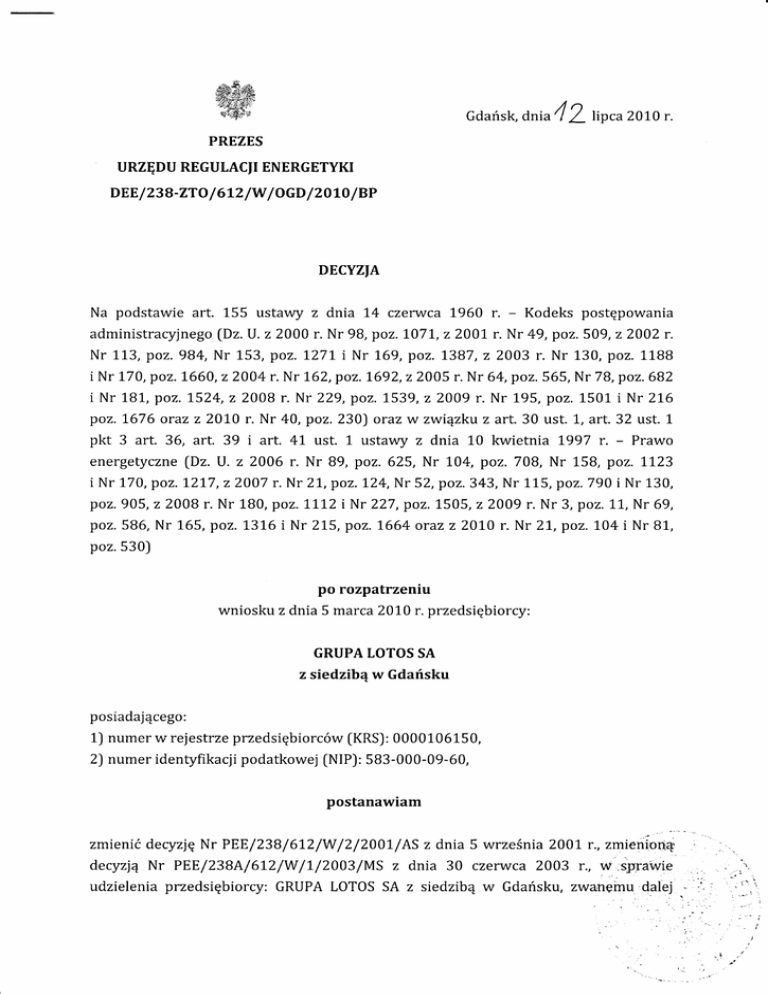 2001, r. Nr PEE/238/6L2/W /2/2001/AS fzmienionej powolan4 wyhej decyzj4),