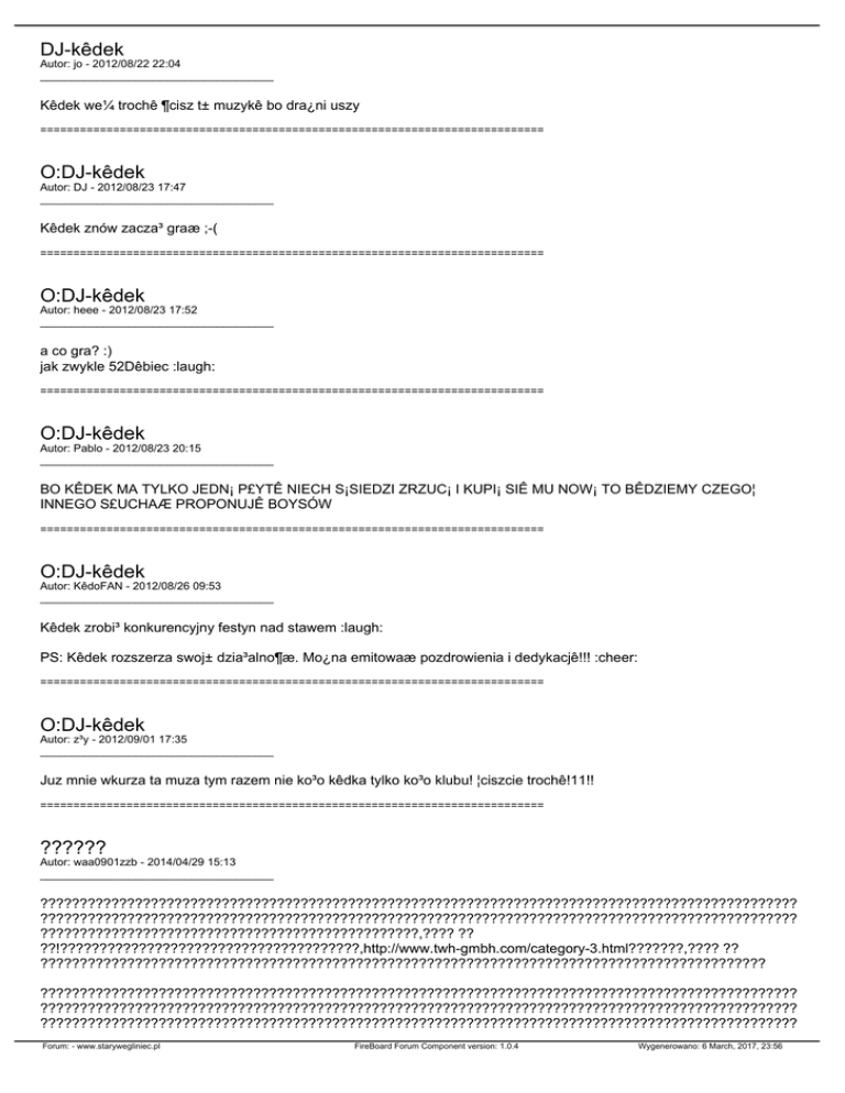 DJ-kêdek Autor: jo - 2012/08/22 22:04 _____________________________________ Kêdek we¼ trochê ¶cisz t± muzykê bo dra¿ni uszy ============================================================================ O:DJ-kêdek Autor: DJ - 2012/08/23 17:47 _____________________________________ Kêdek znów zacza³ graæ ;-( ============================================================================ O:DJ-kêdek Autor: heee - 2012/08/23 17:52 _____________________________________ a co gra? :) jak zwykle 52Dêbiec :laugh: ============================================================================ O:DJ-kêdek Autor: Pablo - 2012/08/23 20:15 _____________________________________ BO KÊDEK MA TYLKO JEDN¡ P£YTÊ NIECH S¡SIEDZI ZRZUC¡ I KUPI¡ SIÊ MU NOW¡ TO BÊDZIEMY CZEGO¦ INNEGO S£UCHAÆ PROPONUJÊ BOYSÓW ============================================================================ O:DJ-kêdek Autor: KêdoFAN - 2012/08/26 09:53 _____________________________________ Kêdek zrobi³ konkurencyjny festyn nad stawem :laugh: PS: Kêdek rozszerza swoj± dzia³alno¶æ. Mo¿na emitowaæ pozdrowienia i dedykacjê!!! :cheer: ============================================================================ O:DJ-kêdek Autor: z³y - 2012/09/01 17:35 _____________________________________ Juz mnie wkurza ta muza tym razem nie ko³o kêdka tylko ko³o klubu! ¦ciszcie trochê!11!! ============================================================================ ?????? Autor: waa0901zzb - 2014/04/29 15:13 _____________________________________ ???????????????????????????????????????????????????????????????????????????????????????????????? ???????????????????????????????????????????????????????????????????????????????????????????????? ????????????????????????????????????????????????,???? ?? ??!??????????????????????????????????????,http://www.twh-gmbh.com/category-3.html???????,???? ?? ???????????????????????????????????????????????????????????????????????????????????????????? ???????????????????????????????????????????????????????????????????????????????????????????????? ???????????????????????????????????????????????????????????????????????????????????????????????? ???????????????????????????????????????????????????????????????????????????????????????????????? Forum: - www.starywegliniec.pl FireBoard Forum Component version: 1.0.4 Wygenerowano: 6 March, 2017, 23:56 ???????????????????? ------------------------------------------------------- http://www.525jj.com/forum.php?mod=viewthread&tid=9738&pid=10636&page=1&extra=page=1#pid10636 http://bbs.917st.com/viewthread.php?tid=113665&pid=425926&page=12&extra=page%3D1#pid425926 http://pozne.cstock.com.tw/viewthread.php?tid=102722&pid=108552&page=1&extra=page%3D1#pid108552 ============================================================================ Forum: - www.starywegliniec.pl FireBoard Forum Component version: 1.0.4 Wygenerowano: 6 March, 2017, 23:56