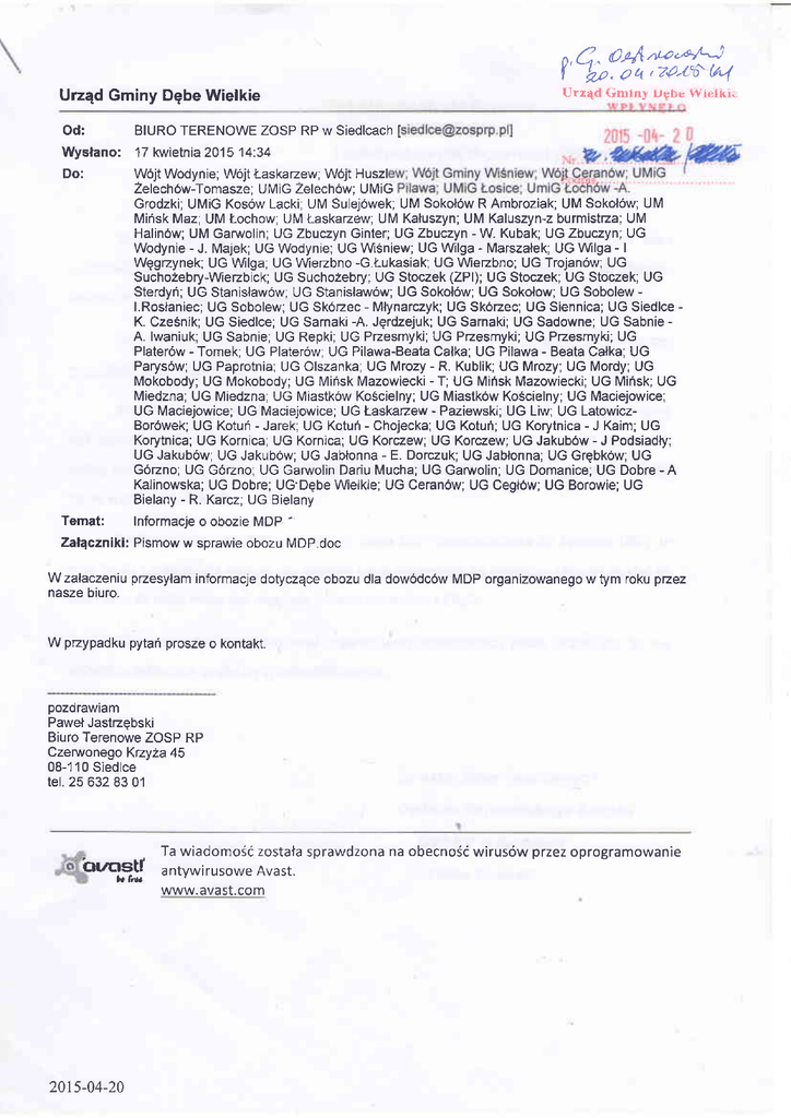 W zalaczeniu pzesylam informacje dotyczEce obozu dla dow6dc6w MDP organizowanego w tym roku pzez