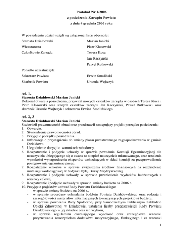 1 Protokół Nr 1/2006 z posiedzenia Zarządu Powiatu z dnia 4
