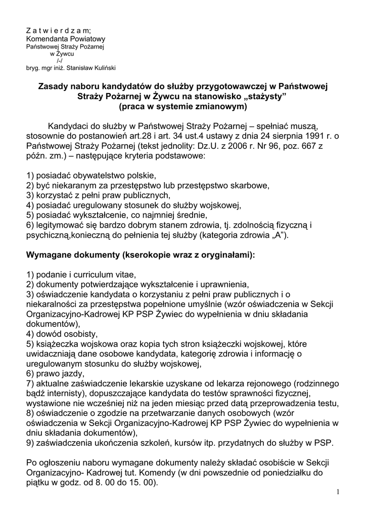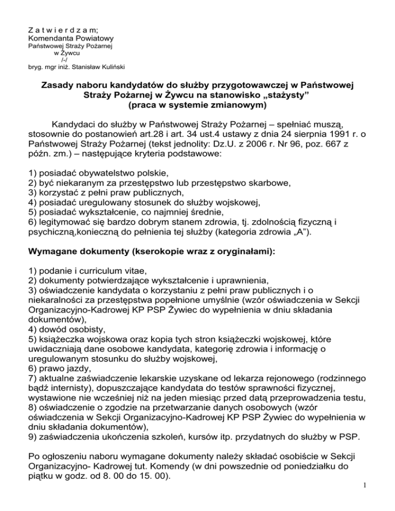 w Żywcu do służby mogą zostać przyjęci bez postępowania kwalifikacyjnego, po