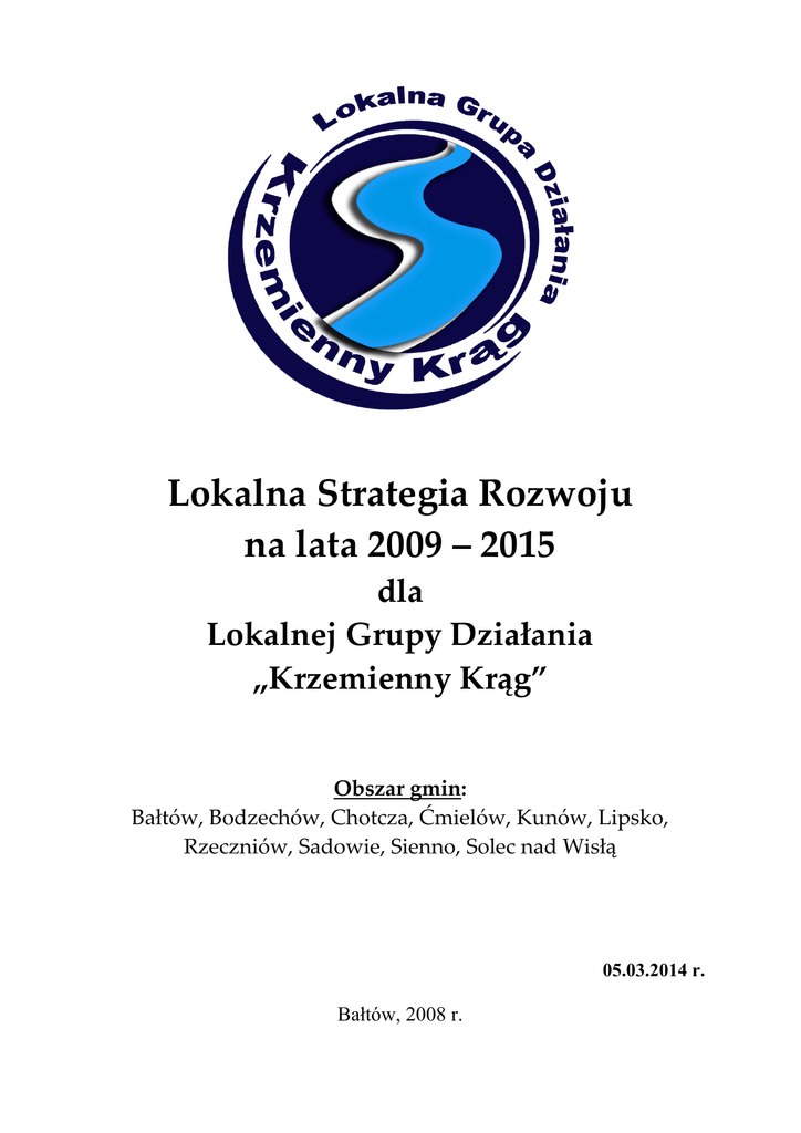 Lokalna Strategia Rozwoju na lata 2009 – 2015 dla Lokalnej Grupy Działania „Krzemienny Krąg” Obszar gmin: Bałtów, Bodzechów, Chotcza, Ćmielów, Kunów, Lipsko, Rzeczniów, Sadowie, Sienno, Solec nad Wisłą 05.03.2014 r. Bałtów, 2008 r. Lokalna Strategia Rozwoju dla Lokalnej Grupy Działania „Krzemienny Krąg” SPIS TREŚCI: Wstęp ………………………………………………………………………………………….4 1. Charakterystyka lokalnej grupy działania (LGD) ……………………………………..6 1.1. Nazwa i status prawny LGD oraz data wpisu do KRS i numer w tym rejestrze ...6 1.2. Proces budowania partnerstwa …………………………………….................…..6 1.3. Charakterystyka członków LGD i sposób rozszerzania lub zmiany składu LGD ……………………………………………………………………………...9 1.4. Struktura Rady LGD ……………..………………………………………….….11 1.5. Zasady i procedury funkcjonowania LGD oraz organu decyzyjnego ……….…12 1.5.1. Zasady funkcjonowania LGD …………………………………………...12 1.5.2. Szczegółowe zasady i procedury funkcjonowania organu decyzyjnego LGD ………………………………………………….…………………14 1.6. Kwalifikacje i doświadczenie osób wchodzących w skład Rady ………...…….15 1.7. Doświadczenie LGD w realizacji operacji ………………….…………………..16 2. Opis obszaru objętego LSR …………………………………….…………………….17 2.1. Wykaz gmin wchodzących w skład LGD ………………………………………17 2.2. Uwarunkowania przestrzenne, geograficzne, przyrodnicze, historyczne i kulturowe …………………………………………………………...…………17 2.2.1. Położenie ………………………………………………………………...17 2.2.2. Powierzchnia w km2 ……………………………………………………..18 2.2.3. Zasięg terytorialny i uwarunkowania geograficzne ………………..……19 2.2.4. Uwarunkowania przyrodnicze i środowiskowe ………………..………..20 2.2.5. Uwarunkowania kulturowe ……………………………………………...22 2.2.6. Uwarunkowania historyczne …………………………………………….25 2.3. Ocena społeczno-gospodarcza obszaru …………………………………………28 2.3.1. Potencjał demograficzny ………………………………………………...28 2.3.2. Potencjał gospodarczy …………………………………………………...30 2.3.3. Potencjał społeczny …………………………………...…………………31 3. Analiza SWOT dla obszaru objętego LSR …………………………………………..33 4. Określenie celów ogólnych i szczegółowych LSR ………………………….……….41 5. Określenie misji LGD ………………………………………….…………………….59 6. Wykazanie spójności specyfiki obszaru z celami LSR ………………....................…60 7. Uzasadnienie podejścia zintegrowanego dla przedsięwzięć planowanych w ramach LSR …………………………………………………………………………………..66 Stowarzyszenie Lokalna Grupa Działania „Krzemienny Krąg” 27-423 Bałtów 55, (041) 264 10 22, www.krzemiennykrag.info, e-mail: [email protected] Lokalna Strategia Rozwoju dla Lokalnej Grupy Działania „Krzemienny Krąg” 8. Uzasadnienie podejścia innowacyjnego dla przedsięwzięć planowanych w ramach LSR …………………………………………………………………………………..67 9. Określenie procedury oceny zgodności operacji z LSR, wyboru projektu przez LGD, odwołania od rozstrzygnięć organu decyzyjnego LGD. Określenie kryteriów oceny zgodności projektów z LSR, kryteriów wyboru projektów, a także procedury zmiany tych kryteriów ………………………………………………………………………..68 10. Budżet LSR dla każdego roku jej realizacji ……………………………………….…68 11. Opis procesu przygotowania i konsultowania LSR ………………………………….71 12. Opis procesu wdrażania i aktualizacji LSR ………………………………………….94 13. Zasady i sposób dokonywania oceny własnej ………………………………………..98 14. Określenie powiązań LSR z innymi dokumentami planistycznymi związanymi z obszarem objętym LSR ………………………………………………………...…100 15. Wskazanie planowanych działań, przedsięwzięć lub operacji realizowanych przez LGD w ramach innych programów wdrażanych na obszarze objętym LSR …….…104 16. Przewidywany wpływ realizacji LSR na rozwój regionu i obszarów wiejskich …...109 17. Informacja o dołączonych do LSR załącznikach …………………………………...114 Stowarzyszenie Lokalna Grupa Działania „Krzemienny Krąg” 27-423 Bałtów 55, (041) 264 10 22, www.krzemiennykrag.info, e-mail: [email protected] Lokalna Strategia Rozwoju dla Lokalnej Grupy Działania „Krzemienny Krąg” Wkład naszego regionu w dorobek cywilizacji sięga czasów, kiedy wizerunek sacrum zawierał się w barwie polerowanego krzemienia. Błękitno-szare smugi symbolizowały niebo. Po jego moc już pięć tysięcy lat temu neolityczny górnik schodził kilkanaście metrów pod ziemię, drążąc szyby i chodniki będące szczytem ówczesnej techniki. Energia wydatkowana na ich wydobycie porównywana jest do tej, która wzniosła egipskie piramidy. Dwa i pół tysiąca lat później do naddunajskich prowincji rzymskich płynęło stąd, wytapiane w setkach tysięcy piecyków, zwanych dymarkami, najlepszej jakości żelazo. O skali zjawiska świadczą znaleziska rzymskich skarbów w Nietulisku i Chmie