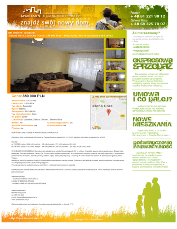 Cena:359 000 PLN - Nieruchomości Zielona Góra