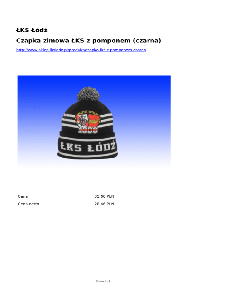 ŁKS Łódź Czapka zimowa ŁKS z pomponem (czarna) http://www.sklep.lkslodz.pl/produkt/czapka-lks-z-pomponem-czarna Cena 35.00 PLN Cena netto 28.46 PLN Strona 1 z 1