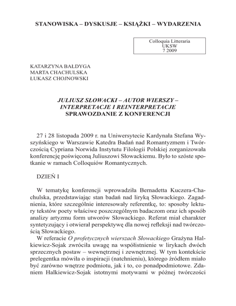 stanowiska – dyskusje – książki – wydarzenia juliusz słowacki