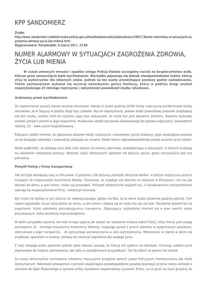 kpp sandomierz numer alarmowy w sytuacjach zagrożenia zdrowia