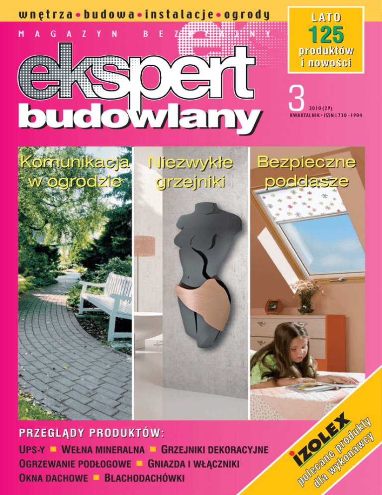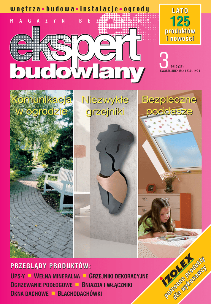 wnętrza•budowa•instalacje•ogrody M A G A Z Y N B E Z P Ł A T N L AT O 125 Y produktów i nowoÊci 3 budowlany 2010 (29) KWARTALNIK • ISSN 1730 -1904 Komunikacja Niezwykłe w ogrodzie grzejniki Bezpieczne poddasze PRZEGLÑDY PRODUKTÓW: UPS-Y n WEŁNA MINERALNA n GRZEJNIKI DEKORACYJNE OGRZEWANIE PODŁOGOWE n GNIAZDA I WŁÑCZNIKI OKNA DACHOWE n BLACHODACHÓWKI 1/+#419'-#/'4;6'4/19+<;,0' CAŁA FLOTA W JEDNYM MIEJSCU ZAPRASZAMY na targi ENERGETAB 2010 14-16 września 2010 r. Bielsko-Biała stoisko G29 Przedstawiciel Handlowy FLIR Paweł Rutkowski tel.: +48(22) 849 71 90, e-mail: rutkowski@flir.com.pl, www.flir.com.pl W NUMERZE | NOWOŚCI 6 | WNĘTRZA Kupujemy drzwi . . . . . . . . . . . . . . . . . . . . . . . . . . . . . . . . . . . . . . . . . 10 Eksperci o malowaniu i trendach kolorystycznych . . . . . . . . . . . . . . . 14 Gładkie ściany od zaraz. . . . . . . . . . . . . . . . . . . . . . . . . . . . . . . . . . . . 18 Bezpyłowa gładź gipsowa . . . . . . . . . . . . . . . . . . . . . . . . . . . . . . . . . . 19 Kupujemy drzwi Czym przykleić płytki w pomieszczeniach mokrych . . . . . . . . . . . . . 20 Komfortowe poddasze, czyli jak się zabezpieczyć przed nadmiarem słońca. . . . . . . . . . . . . . . . . . . . . . . . . . . . . . . . . . 22 | BUDOWA Bezpieczne poddasze, czyli jak się zabezpieczyć przed złodziejami . . 24 Przegląd okien dachowych . . . . . . . . . . . . . . . . . . . . . . . . . . . . . . . . 27 Dobierz rynnę do swojego domu. . . . . . . . . . . . . . . . . . . . . . . . . . . . 28 Blaszane pokrycia dachowe od A do Z . . . . . . . . . . . . . . . . . . . . . . . 32 Bezpieczne poddasze Przegląd blachodachówek. . . . . . . . . . . . . . . . . . . . . . . . . . . . . . . . . 34 Remont domu po powodzi . . . . . . . . . . . . . . . . . . . . . . . . . . . . . . . . 36 Płyta gipsowa do środowisk mokrych i wilgotnych. . . . . . . . . . . . . . 40 Wełna mineralna – materiał uniwersalny . . . . . . . . . . . . . . . . . . . . . . 42 Przegląd izolacji z wełny mineralnej . . . . . . . . . . . . . . . . . . . . . . . . . 44 Remontuj z...: Kleją i uszczelniają . . . . . . . . . . . . . . . . . . . . . . . . . . . 49 Gdzie usytuować garaż i jaką wybrać bramę . . . . . . . . . . . . . . . . . . 50 | INSTALACJE Dobierz rynnę do swojego domu ABC kotłów kondensacyjnych . . . . . . . . . . . . . . . . . . . . . . . . . . . . . . 56 Modernizuj z...: Jak zaoszczędzić na ogrzewaniu . . . . . . . . . . . . . . . 58 Niezwykłe grzejniki . . . . . . . . . . . . . . . . . . . . . . . . . . . . . . . . . . . . . . 60 Przegląd grzejników dekoracyjnych . . . . . . . . . . . . . . . . . . . . . . . . . 61 System instalacyjny Perfekt System . . . . . . . . . . . . . . . . . . . . . . . . . 63 Ciepła podłoga . . . . . . . . . . . . . . . . . . . . . . . . . . . . . . . . . . . . . . . . . 64 Przegląd ogrzewania podłogowego. . . . . . . . . . . . . . . . . . . . . . . . . . 66 Dobór osprzętu w instalacjach elektrycznych . . . . . . . . . . . . . . . . . . 68 Ciepła podłoga Przegląd osprzętu elektroinstalacyjnego . . . . . . . . . . . . . . . . . . . . . . 72 Domowe zasilacze UPS. . . . . . . . . . . . . . . . . . . . . . . . . . . . . . . . . . . . 76 Przegląd zasilaczy UPS . . . . . . . . . . . . . . . . . . . . . . . . . . . . . . . . . . . 77 | OGRODY Komunikacja w ogrodzie . . . . . . . . . . . . . . . . . . . . . . . . . . . . . . . . . . 78 Klinkierowe nawierzchnie . . . . . . . . . . . . . . . . . . . . . . . . . . . . . . . . . 80 * * * Komunikacja w ogrodzie Warto wiedzieć, Indeks firm . . . . . . . . . . . . . . . . . . . . . . . . . . . . . . . 82 4 www.eksper tbudowlany.pl nr 3/2010 Opti-Myst®. Kominki elektryczne to rozwiązanie komfortowe, proste w obsłudze NOWOŚCI i niedrogie w eksploatacji, gdyż sam efekt płomienia pobiera jedynie 120–300 W energii elektrycznej. Nie wymagają również odprowadzenia spalin, podłączenia do komina ani specjalnego systemu wentylacji, dlatego sprawdzą się nawet w miesz- TAŚMA MALARSKA kaniu w bloku. Nie wydzielają spalin ani nie parzą, dzięki czemu są całkowicie bezpieczne. LOW TACK, najnowszy produkt z serii Blue Dolphin Ta- Kominki elektryczne Albany i Delaware są praktycznie bezobsługowe, nie wy- pes, jest specjalnie opracowaną taśmą malarską, którą magają skomplikowanego montażu i działają natychmiast po podłączeniu do prą- można użyć na świeżo naniesione farby (min. 2 godziny du. Główną zaletą obu modeli jest przede wszystkim najnowszej generacji trójwy- od pomalowania), jak również na delikatne powierzch- miarowy efekt płomienia Opti-Myst®. Pod tą nazwą kryje się nowatorska tech- nie, np.: tapety, niemalowane i nieimpregnowane płyty nologia, która wykorzystuje ultradźwięki do wytworzenia mgły wodnej, która na- gipsowo-kartonowe. Dzięki specjalnie opracowanej re- stępnie zostaje odpowiednio podświetlona. Daje to trójwymiarowy efekt płomieni cepturze kleju, użycie taśmy zapewnia bezpieczeństwo i dymu wydobywającego się z migoczącego paleniska kominka. Opti-Myst® two- i daje gwarancję, że pomalowane powierzchnie nie zosta- rzy tak doskonałą iluzję żywego ognia, że jest on praktycznie nie od odróżnienia od ną uszkodzone podczas jej odklejania. prawdziwych płomieni. Dzięki wbudowanym termowentylatorom, o mocy 1,5 kW w przypadku Albany i 2 kW w przypadku Delaware, kominki mogą również emano- SYSTEM BUDOWY TERMALICA wać ciepłem. Co więcej, pomagają także nawilżać pomieszczenie, gdyż technologia Opti-Myst® bazuje na parze wodnej. Użytkownicy mogą w pełni kontrolować inten- Bruk-Bet® wprowadził do swojej oferty kompletny system budowy domów z be- sywność płomienia i dymu za pomocą pilota zdalnego sterowania. tonu komórkowego Termalica, który składa się z bloczków z betonu komórkowego przeznaczonych do stawiania ścian jedno- i wielowarstwowych oraz dodatkowych JUBILEUSZOWE PRODUKTY elementów 