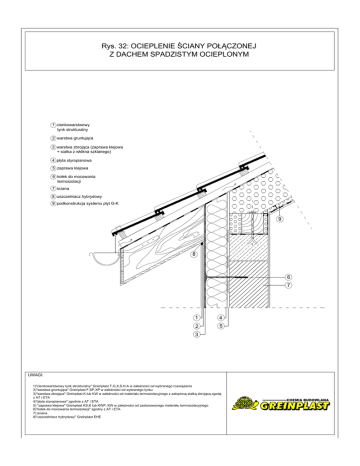 Z DACHEM SPADZISTYM OCIEPLONYM 1 cienkowarstwowy tynk strukturalny 5 zaprawa klejowa termoizolacji 8 uszczelniacz hybrydowy 9 8 6 7 1 4 2 5 3 UWAGI: z AT i ETA 8)"uszczelniacz hybrydowy" Greinplast EHE CHEMIA BUDOWLANA