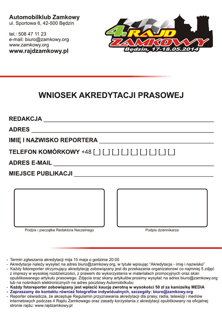 Podpis i pieczątka Redaktora Naczelnego Podpis dziennikarza