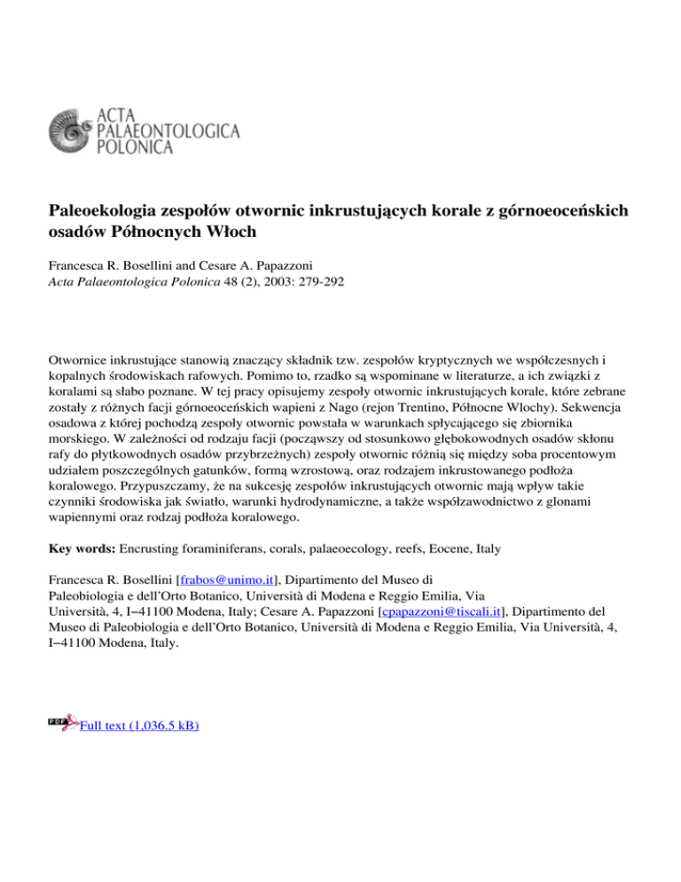 Paleoekologia zespołów otwornic inkrustujących korale z