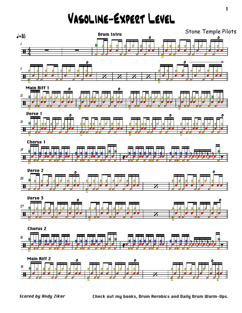 Vasoline-Expert Level 1 o o 1 yy xx xx xx xx xx xx xx xx xx xx xx xx xx xx xx 4 ! ! ã4 œ œ œ œ œ œ œ œ œ œ œ œ œ œyy œ œ œ œ œ œ œ œ œ œ œ œ œ o o 5 xx œ xx œxx œxx xx œ xx œxx œxx œ xx œ xx œxx œxx xx œ xx œxx œxx œ ã œyy œ œ ‘ ‘ ‘ ‘ œyy œ œ œœ œ œ œœ œ œ Main Riff 1 o o 11 yy xx xx xx xx xx xx xx xx xx xx xx xx xx xx xx xx xx xx xx xx xx xx xx xx xx xx xx xx xx yy xx ã œyy œ œ œ œ œ œ œ œ œ œ œ œ œ œyy œ œ œ œ œ œ œ œ œ œ œ œ œ œyy œ œ œ œ œ œ œ œ œ œ œ œ œ œyy œ œ œ œ œ œ œ œ œ œ œ œ œ Verse 1 o o o 15 yy xx xx xx xx xx xx xx xx xx xx xx xx xx xx xx xx xx xx xx xx xx xx xx xx xx xx xx xx xx xx xx ã œyy œ œ œ œ œ œ œ œ œ œ œ œ œ œyy œ œ œ œ œ œ œ œ œ œ œ œ œyy œ œ œ œ œ œ œ œ œ œ œ œ œ œyy œ œ œ œ œ œ œ œ œ œ œ œ q=85 Drum Intro Chorus 1 yy yy yy yy yy yy yy yy yy yy yy yy yy yy yy yy yy yy yy yy yy yy yy ã œyy œ œ œ œ œ œ œœ œ œ œ œ œ œœ œ œ œ œ œ œ œœœ œ œ œ œ œ œ œ " œ œ œ œ œ œœœ œ œ œ œ œ œ œ Verse 2 o 23 yy xx xx xx xx xx xx xx xx xx xx xx xx xx xx xx ã œ œ œ œ œ œ œ œ œ œ œ œ œ œyy œ œ œ œ œ œ œ œ œ œ œ œ œ ‘ Verse 3 o 27 yy xx xx xx xx xx xx xx xx xx xx xx xx xx xx xx ã œyy œ œ œ œ œ œ œ œ œ œ œ œ œ œyy œ œ œ œ œ œ œ œ œ œ œ œ ‘ 19 Chorus 2 yy yy yy yy yy yy yy yy yy yy yy yy yy yy yy yy yy œyy œyy œ yy œ yy œyy œyy œ œ œ œ œ œ œ œ œ œ œ œ œ œ œ œ œ " ã œyy œ œ œ œ œ œ œ œ œ œ œ œ œ œ œ œ œ œ œ œ œ œ œ Main Riff 2 o o 35 yy xx xx xx xx xx xx xx xx xx xx xx xx xx xx xx ã œ œ œ œ œ œ œ œ œ œ œ œ œ œ œyy œ œ œ œ œ œ œ œ œ œ œ œ œ ‘ 31 Scored by Andy Ziker Stone Temple Pilots yy œ yy œyy œyy œjœ œjœ œjœ œr œœjœ yy ‰ œ œœ œ œ œ xx œ xx œxx œ œœ xx xx xx œyy œ œ œ œ o œxx xx œ xx œxx œ œ œœ œ o xx xx xx xx xx œœœœ œœœœ yy œ yy œyy œyy œjœ œjœ œjœ œr œœjœ yy ‰ œ œœ œ œ œ o xx xx xx xx xx xx xx xx œyy œ œ œ œ œ œ œ œ œ œ œ œyy œ Check out my books, Drum Aerobics and Daily Drum Warm-Ups. 2 o o o 39 yy xx xx xx xx xx xx xx xx xx xx xx xx xx xx xx xx xx xx xx xx œ œ œ œ œ œ œ œ œ œ œ œ œ œ œ ã œ œœ œœ œ œyy œ œ œ œ œ œyy œ œ œ œ œ œ œ œ œ œ œ œ Guitar Solo o o 43 yy xx xx xx xx xx xx xx xx xx xx xx xx xx xx xx ã œ œ œ œ œ œ œ œ œ œ œ œ œ œyy œ œ œ œ œ œ œ œ œ œ œ œ œ ‘ Bridge xx xx xx xx xx xx j j j r œyy œ œ œ œ œ œ œ œ œ œ œ œ œ œ œ œ œ xx œ xx œxx œxx xx œ xx œ œ œ œ œ œyy œ œ œ œ Verse 4 o o o 47 yy xx xx xx xx xx xx xx xx xx xx xx xx xx xx xx xx xx xx xx xx xx xx xx xx xx xx xx xx xx xx xx ã œ œ œ œ œ œ œ œ œ œ œ œ œ œ œ œ œ œ œ œ œ œ œ œ œ œ œ œ œ œ œ œ œ œ œ œ œ œ œ œ œ œ œyy œ œ œ œ œ œ œ œ œ œ œ œ Chorus 3 51 yy yy yy yy yy yy yy yy yy yy yy yy yy yy yy yy yy œyy œyy œ yy œ yy œyy œyy œ yy œ yy œyy œyy œjœ œjœ œjœ œr œœjœ yy ‰ œ œ œ œ œ œ œ œ œ œ œ œ œ œ œ œ ! ã œyy œ œ œ œ œ œ œ œ œ œ œ œ œ œ œ œ œ œ œ œ œ œ œ œ œ œ œ œ œ o o 55 yy xx xx xx xx xx xx xx xx xx xx xx xx xx xx xx ã œ œ œ œ œ œ œ œ œ œ œ œ œ œ œyy œ œ œ œ œ œ œ œ œ œ œ œ œ Main Riff 3 59 yy 㜠Scored by Andy Ziker Œ ‘ o xx œ xx œxx œxx xx œ xx œxx œxx œ œyy œ œ œ œ œ œ yy Ó Check out my books, Drum Aerobics and Daily Drum Warm-Ups.