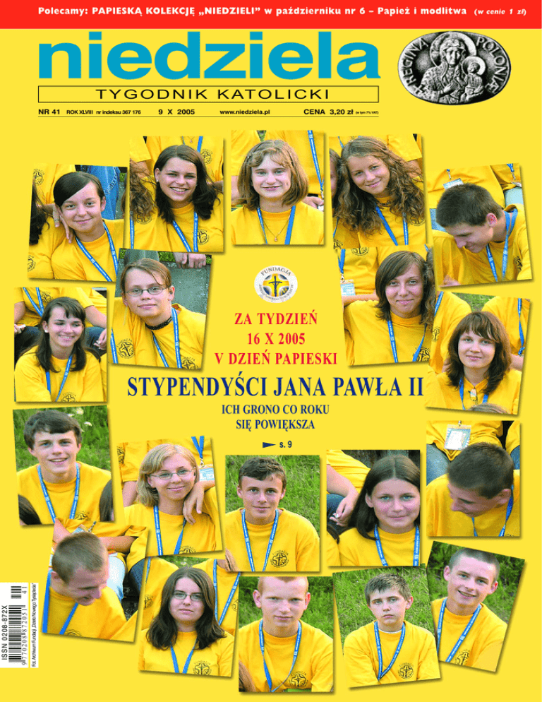 Polecamy: PAPIESKĄ KOLEKCJĘ „NIEDZIELI” w październiku nr 6 – Papież i modlitwa niedziela T Y G O D N I K K AT O L I C K I NR 41 ROK XLVIII nr indeksu 367 176 9 X 2005 CENA 3,20 zł www.niedziela.pl (w tym 7% VAT) ZA TYDZIEŃ 16 X 2005 V DZIEŃ PAPIESKI STYPENDYŚCI JANA PAWŁA II ICH GRONO CO ROKU SIĘ POWIĘKSZA 41 9 770208 872051 ISSN 0208-872X Fot. Archiwum Fundacji „Dzieło Nowego Tysiąclecia” s. 9 ( w cenie 1 zł ) TYDZIEŃ W LITURGII TYDZIEŃ LITURGICZNY Na Papieskim Szlaku – w Beskidzie Makowskim „Śpiewam wielkanocną antyfonę maryjną” 9 -1 15 X 2005 URSZULA WŁASIUK FUNDACJA SZLAKI PAPIESKIE 3 6 9 Opowieść o niezwykłym wysłanniku kard. Wyszyńskiego do Piusa XII RÓŻA SIEMIEŃSKA Sursum corda Zauważyć katolickie media ZAPROSZENI KS. IRENEUSZ SKUBIŚ Liderzy Pokolenia JPII KATARZYNA WOYNAROWSKA KS. LUDWIK WARZYBOK O Fundamenty wiary Iść za prawdą chrześcijańską 10 11 12 13 14 17 18 Z KARD. STANISŁAWEM NAGIM SCJ rozmawia Agnieszka Dziarmaga Niemiecki hierarcha czasów nazizmu – błogosławionym „Lew z Münster” KS. PAWEŁ STANISZEWSKI Nie ma terroryzmu islamskiego, jest tylko terroryzm Z KS. RAFAŁEM MARKOWSKIM – wykładowcą religiologii na UKSW – rozmawia Wiesława Lewandowska Śladami Benedykta XVI KS. MARIUSZ KRAWIEC SSP Widziane ze Szwajcarii Miłosierdzie bez sprawiedliwości jest matką bałaganu DIONIZY SIMSON Polskie oblicza bezrobocia Praca w Polsce dla polskiej młodzieży ADAM BIELA Porządkowanie pojęć Bania z pomysłami EWA POLAK-PAŁKIEWICZ Ocalona 20 – ocaloną z nowojorskiej płonącej wieży – rozmawia o. Michał Czyżewski OSPPE 21 ANNA WYSZYŃSKA 24 CEZARY LACKORZYŃSKI 32 Oferta Biblioteki „Niedzieli” Z LEOKADIĄ GŁOGOWSKĄ „Potop” na Jasnej Górze Londyn – miasto polskich marzeń Numer oddano do druku 30 września, a do kolportażu – 3 października 2005 r. 2 niedziela nr 41 jciec Niebieski zaprasza nas – wszystkich ludzi – do budowania swojego Królestwa na ziemi. Stworzył nas na podobieństwo swoje, jak to mamy objawione w Księdze Rodzaju (Rdz 1, 26): „Uczyńmy człowieka na Nasz obraz, podobnego Nam”. I już ten fakt stworzenia człowieka na podobieństwo Boże jest zaproszeniem do uczestnictwa w stwórczej miłości Boga. W Ewangelii dzisiejszej cztery razy zostało użyte to słowo. Zaproszenie przez Kogoś tak wielkiego jak nasz Ojciec Niebieski nie może być zlekceważone. Św. Paweł we wzruszających słowach podał nam realistyczną definicję tego Bożego wesela, na które jesteśmy zaproszeni: „Ani oko nie widziało, ani ucho nie słyszało, ani serce człowieka nie zdołało pojąć, jak wielkie rzeczy przygotował Bóg tym, którzy Go miłują” (1 Kor 2, 9). A św. Jan zapewnia nas słowami samego Pana Jezusa z Jego pożegnalnej mowy: „W domu Ojca mego jest mieszkań wiele. Gdyby tak nie było, to bym wam powiedział. Idę przecież przygotować wam miejsce” (J 14, 2). Nasza ziemia zatem, mimo swojego piękna, jest tylko miejscem wygnania w porównaniu z pełnią piękna i szczęścia w niebie. W ludzkim sercu jest pragnienie piękna i szczęścia trwałego. Św. Paweł w swoim Liście do Filipian, dziś czytanym, tak pisze: „A Bóg mój według swego bogactwa zaspokoi wspaniale w Chrystusie Jezusie każdą waszą potrzebę”. Jeżeli „każdą”, to i tę najważniejszą, która – mówiąc obrazowo – ciągle pulsuje na dnie naszego serca. Proboszcz pewnej parafii na peryferiach dużego miasta zachodniej Europy ze smutkiem stwierdził, że do jego kościoła na niedzielną Mszę św. przychodzi coraz mniej wiernych. Ze smutkiem skonstatował: „Przecież oni wszyscy są ochrzczeni!”. Po namyśle rozesłał do swoich parafian takie niezwykłe zaproszenie: „W naszym kościele w niedzielę, dnia..., o godz. ... będzie odprawiona Msza św. za naszą śp. parafię”. Tak, za parafię, która umarła! Na tę niezwykłą Mszę św. żałobną przyszło więcej niż zwykle ludzi. Niektórzy z ciekawości: Co to będzie?... Na środku kościoła ujrzeli katafalk i na nim trumnę, ale... nieprzykrytą. Przed ołtarzem stał smutny ksiądz proboszcz i zapraszał wchodzących. Wchodzili, podchodzili do trumny i szybko się od niej oddalali, niektórzy z niewyraźnym uśmiechem na twarzy... Bo ich proboszcz umieścił w trumnie... lustro i każdy, zaglądając do niej, zobaczył odbicie swojej twarzy. I chyba każdy zrozumiał, że to on jest cząstką tej śp. parafii... 9 października 2005 9 X DWUDZIESTA ÓSMA NIEDZIELA ZWYKŁA Iz 25, 6-10a; Ps 23; Flp 4, 12-14. 19-20; Ef 1, 17-18; Mt 22, 1-14. 10 X Poniedziałek. Dzień powszedni Rz 1, 1-7; Ps 98; Ps 95, 8ab; Łk 11, 29-32 albo: wspomnienie św. Dionizego, biskupa, i Towarzyszy Męczenników, albo: wspomnienie św. Jana Leonardiego, prezbitera, albo: wspomnienie bł. Angeli Truszkowskiej, dziewicy. 11 X Wtorek. Dzień powszedni Rz 1, 16-25; Ps 19; Hbr 4, 12; Łk 11, 37-41. 12 X Środa. Dzień powszedni Rz 2, 1-11; Ps 62; J 10, 27; Łk 11, 42-46. 13 X Czwartek. Wspomnienie bł. Honorata Koźmińskiego, prezbitera Rz 3, 21-29; Ps 130; J 14, 6; Łk 11, 47-54. 14 X Piątek. Dzień powszedni Rz 4, 1-8; Ps 32; Ps 32, 22; Łk 12, 1-7 albo: wspomnienie bł. Radzima Gaudentego, biskupa, albo: wspomnienie św. Kaliksta I, papieża i męczennika, albo: wspomnienie św. Małgorzaty Marii Alacoque, dziewicy. 15 X Sobota. Wspomnienie św. Teresy z Avila, dziewicy i doktora Kościoła Rz 4, 13. 16-18; Ps 105; J 15, 26b. 27a; Łk 12, 8-12. DWUDZIESTA ÓSMA NIEDZIELA ZWYK£A CZYTANIE Z KSIĘGI PROROKA IZAJASZA (Iz 25, 6-10a) Pan Zastępów przygotuje dla wszystkich ludów na tej górze ucztę z tłustego mięsa, ucztę z wybornych win, z najpożywniejszego mięsa, z najwyborniejszych win. Zedrze On na tej górze zasłonę, zapuszczoną na twarzy wszystkich ludów, i całun, który okrywał wszystkie narody. Raz na zawsze zniszczy śmierć. Wtedy Pan otrze łzy z każdego oblicza, odejmie hańbę swego ludu po całej ziem