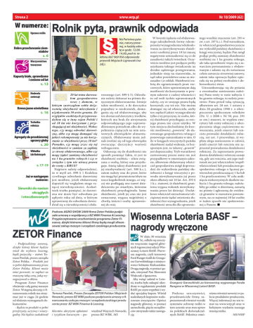 www.wrp.pl Strona W numerze: Uprawa roślin Rolnik pyta, Ê prawnik odpowiada Å Na Państwa pytania, natury prawnej, w każdą sobotę w godz. 12.0014.00, pod nr. telefonu 667 969 956 odpowiada prawnik Wojciech Lignowski (na zdj.). Dobre przechowanie ziemniaków s. 6 Å Warzywnictwo towarowe Kapusty białe, sprawdzone i cenione od lat s. 13 Hodowla zwierząt Krowa jasno oświetlona s. 16 Technika rolnicza Agregaty do przedsiewnej uprawy gleby s. 20 Wkładka Izb Rolniczych s. 17-19 Już w następnym numerze: Siewniki do nasion okrągłych i otoczkowanych 20 lat temu darowałem gospodarstwo wraz z domem, w którym zastrzegłem sobie dożywotnią służebność mieszkania i użytkowania 30 arów gruntu. Ze względów osobistych przeprowadziłem się w inny rejon Polski i od 18 lat nie korzystam z przysługującej mi służebności. Wobec tego, czy mogę odwołać darowiznę, albo czy mogę domagać się jakieś rekompensaty za nie korzystanie ze służebności przez 18 lat? Ponadto, czy mogę zrzec się tej służebności w zamian za zapłatę ze strony obdarowanego, albo czy mogę żądać zamiany służebności na 1 ha gruntów rolnych i czy w związku z tym nie utracę prawa do renty z KRUS? Najpierw należy odpowiedzieć, że w myśl art. 898 § 1 Kodeksu cywilnego odwołanie darowizny jest możliwe, jeżeli obdarowany dopuścił się względem niego rażącej niewdzięczności. Aczkolwiek trzeba pamiętać, że darowizna nie może być odwołana po upływie roku od dnia, w którym uprawniony do odwołania dowiedział się o niewdzięczności obda- rowanego (art. 899 § 3). Odwołanie należy dokonać na piśmie doręczonym obdarowanemu. Istnieje także możliwość, o ile darczyńca popadnie w niedostatek, domagania się od obdarowanego, aby ten dostarczał darczyńcy środków, których mu brak do utrzymania odpowiadającego jego usprawiedliwionym potrzebom albo do wypełnienia ciążących na nim ustawowych obowiązków alimentacyjnych. Obdarowany może jednak zwolnić się od tego obowiązku zwracając darczyńcy wartość wzbogacenia. Odnosząc się do służebności nie sposób pominąć faktu, iż jest to służebność osobista – silnie związana z osobą, której ona przysługuje. Istotą takiej służebności jest jej niezbywalność (art. 300 k.c.), zatem należy ona do praw, które nie mogą być przeniesione/zbyte na rzecz kogokolwiek innego, co więcej nie podlegają one nawet dziedziczeniu po zmarłym, któremu służebność przysługiwała. Sama służebność, jeżeli jej czas nie jest oznaczony, wygasa najpóźniej z chwilą śmierci osoby uprawnionej do niej. Podczas AGRO SHOW 2009 firma Zetor Polska podpisała umowę o współpracy z BZ WBK Finanse & Leasing. Przypieczętowano uruchomienie programu Zetor Finance, dzięki któremu klienci firmy będą mogli sfinansować zakup maszyn i urządzeń czeskiego producenta. ZETOR Finance - Podpisaliśmy umowę, dzięki której klient będzie miał do wyboru leasing, bądź pożyczkę – mówi Tomasz Pawlak, prezes zarządu Zetor Polska. - Produkt jest w pełni dofinansowany przez Zetor Polska. Klient może mieć pewność, że zapłaci za maszynę taką cenę, jaką wynegocjował u dilera. Program Zetor Finance obejmuje całą gamę maszyn Zetor. Wstępną decyzję o finansowaniu rolnik ma otrzymać już w ciągu 24 godzin od złożenia wymaganych dokumentów. - Będzie to produkt w pełni przejrzysty, uczciwy i wiarygodny. Nie będzie zaskakiwał Nr 10/2009 (62) Tomasz Pawlak, Prezes Zarządu ZETOR Polska i Wojciech Nowacki, prezes BZ WBK podczas podpisania umowy o finansowaniu zakupu maszyn i urządzeńczeskiego producenta przez BZ WBK Finanse & Leasing. klientów ukrytymi opłatami i ryzykiem kursowym – po- wiedział Wojciech Nowacki, prezes BZ WBK. MS W kwestii żądania od obdarowanego jakiejkolwiek formy rekompensaty/wynagrodzenia/odszkodowania za niewykonywanie służebności osobistej przez 18 lat muszę negatywnie ustosunkować się co do zasadności takich twierdzeń. Oczywiście możliwe jest podjęcie próby uzyskania takiego świadczenia na drodze sądowego postępowania, jednakże stoję na stanowisku, że sąd takie powództwo uzna za niezasadne i je oddali. Służebności należą do ograniczonych praw rzeczowych, które uprawnionym dają możliwość do korzystania w pewnym zakresie z cudzej własności i to od woli tychże uprawnionych zależy, czy ze swojego prawa będą korzystali, czy też nie. Nie można domagać się od właściciela, ażeby ten zapłacił jakieś wynagrodzenie tylko z tej przyczyny, że osoba, której służebność przysługuje, ze swojego prawa nie czyni użytku. W tym miejscu dochodzimy do kwestii możliwości „powrotu” do darowanego gospodarstwa rolnego i ponownego zamieszkania w nim. O ile w księgach wieczystych pańska służebność nadal widnieje, to bezspornym jest, że takowy „powrót” jest dopuszczalny. Tryb warunkowy zastosowany przeze mnie nie jest przypadkowy w omawianym zakresie, albowiem obdarowany właściciel gospodarstwa mógł doprowadzić do wykreślenia pańskiej służebności z księgi wieczystej z powodu niewykonywania jej przez okres dłuższy niż 10 lat. Art. 293 § 1 k.c. stanowi, iż służebność gruntowa wygasa wskutek niewykonywania przez lat dziesięć. Dodatkowo właściciel nieruchomości obciążonej może żądać zniesienia służebności bez wynagrodzenia, jeżeli służebność utraciła dla uprawnio- nego wszelkie znaczenie (art. 295 w zw. z art. 297 k.c.). Pod warunkiem, że właściciel gospodarstwa jeszcze nie wykreślił pańskiej służebności z księgi wieczystej, będzie Pan mógł podjąć próbę zamiany służebności osobistej na 1 ha gruntu rolnego, ale taka sposobność wiąże się z zawarciem porozumienia z obdarowanym i udanie się do notariusza celem zawarcia stosownej umowy, zatem taka operacja będzie opierała się na pełnej swobodzie i dobrowolności stron. Ustosunkowując się do pytania o ewentualne za