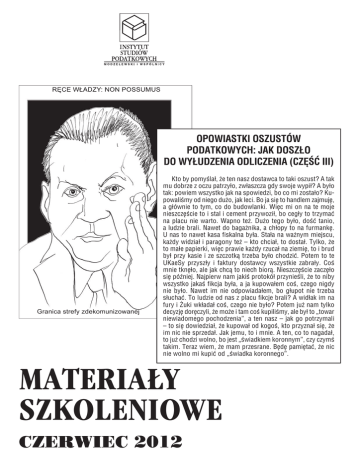 RĘCE WŁADZY: NON POSSUMUS OPOWIASTKI OSZUSTÓW PODATKOWYCH: JAK DOSZŁO DO WYŁUDZENIA ODLICZENIA (CZĘŚĆ III) Granica strefy zdekomunizowanej Kto by pomyślał, że ten nasz dostawca to taki oszust? A tak mu dobrze z oczu patrzyło, zwłaszcza gdy swoje wypił? A było tak: powiem wszystko jak na spowiedzi, bo co mi zostało? Kupowaliśmy od niego dużo, jak leci. Bo ja się to handlem zajmuję, a głównie to tym, co do budowlanki. Więc mi on na te moje nieszczęście to i stal i cement przywoził, bo cegły to trzymać na placu nie warto. Wapno też. Dużo tego było, dość tanio, a ludzie brali. Nawet do bagażnika, a chłopy to na furmankę. U nas to nawet kasa fiskalna była. Stała na ważnym miejscu, każdy widział i paragony też – kto chciał, to dostał. Tylko, że to małe papierki, więc prawie każdy rzucał na ziemię, to i brud był przy kasie i ze szczotką trzeba było chodzić. Potem to te UKaeSy przyszły i faktury dostawcy wszystkie zabrały. Coś mnie tknęło, ale jak chcą to niech biorą. Nieszczęście zaczęło się później. Najpierw nam jakiś protokół przynieśli, że to niby wszystko jakaś fikcja była, a ja kupowałem coś, czego nigdy nie było. Nawet im nie odpowiadałem, bo głupot nie trzeba słuchać. To ludzie od nas z placu fikcje brali? A widłak im na fury i Żuki wkładał coś, czego nie było? Potem już nam tylko decyzję doręczyli, że może i tam coś kupiliśmy, ale był to „towar niewiadomego pochodzenia”, a ten nasz – jak go potrzymali – to się dowiedział, że kupował od kogoś, kto przyznał się, że im nic nie sprzedał. Jak jemu, to i mnie. A ten, co to nagadał, to już chodzi wolno, bo jest „świadkiem koronnym”, czy czymś takim. Teraz wiem, że mam przesrane. Będę pamiętać, że nic nie wolno mi kupić od „świadka koronnego”. MATERIA£Y SZKOLENIOWE CZERWIEC 2012 INSTYTUT STUDIÓW PODATKOWYCH SPIS TREŚCI 1. Podatek naliczony i zwrot podatku VAT w świetle orzecznictwa ETS ...................... 2. Odliczenie podatku naliczonego oraz zwrot podatku na podstawie art. 86 i 87 ustawy o podatku od towarów i usług w świetle orzecznictwa Naczelnego Sądu Administracyjnego .................................................................................................... 3. Faktury o których mowa w art. 108 ustawy z dnia 11 marca 2004 r. o podatku od towarów i usług w świetle judykatury ...................................................................... 4. Wyrok NSA dotyczący opodatkowania podatkiem dochodowym od osób fizycznych niektórych świadczeń otrzymanych przez pracowników od zakładu pracy ............... 5. Korekta podatku naliczonego w przypadku, gdy zmieniło się prawo do obniżenia kwoty podatku należnego o kwotę podatku naliczonego od nabywanego towaru lub usługi przez podatnika w świetle wyroków sądów administracyjnych i interpretacji indywidualnych. ....................................................................................................... 6. Uchwała NSA z dnia 24 października 2011 r. (I FPS 9/10) – orzeczenie prawomocne ............................................................................................................. 7. Wyrok NSA z dnia 18 października 2011 r. (I FSK 1369/10) – orzeczenie prawomocne ............................................................................................................. 8. Podatek dochodowy od osób prawnych w orzecznictwie w 2012 roku ..................... Materia³y szkoleniowe – 2012 3 7 11 14 16 20 31 38 1 INSTYTUT STUDIÓW PODATKOWYCH Uwaga: W każdy poniedziałek ukazuje się „Serwis Doradztwa Podatkowego”, będący elektronicznym dodatkiem do miesięcznika „Biuletyn ISP-Doradztwo Podatkowe” wydawanego od ponad 15 lat przez Instytut. „Serwis Doradztwa Podatkowego” dostępny jest bezpłatnie dla wszystkich Osób oraz Instytucji zainteresowanych profesjonalną wiedzą podatkową, a zwłaszcza księgowych, biur rachunkowych, płatników podatków, doradców podatkowych i biegłych rewidentów. Serwis dostępny jest na stronie: www.isp-modzelewski.pl. PODATEK NALICZONY I ZWROT PODATKU VAT W ŚWIETLE ORZECZNICTWA ETS Opracował: Andrzej Widawski I. ORZECZENIA WYDANE NA PODSTAWIE SZÓSTEJ DYREKTYWY1 1. Wyrok ETS2 z dnia 21 kwietnia 2005 r.3 w sprawie Finanzamt Bergisch Gladbach przeciwko H. E – w wyroku rozważone zostały następujące problemy: − czy i ewentualnie w jakim zakresie, Podatnik, który jest wraz z małżonką współwłaścicielem budynku mieszkalnego i używa znajdującego się w nim pomieszczenia do celów wyłącznie zawodowych, może korzystać z prawa do odliczenia podatku od wartości dodanej naliczonego od budowy tego budynku. ETS orzekł, że „osoba, która nabywa dom lub zleca jego budowę celem zamieszkania w nim z rodziną, działa w charakterze podatnika i w związku z tym korzysta z prawa 1 2 3 Dyrektywa Rady z dnia 17 maja 1977 r. w sprawie harmonizacji ustawodawstw państw członkowskich w odniesieniu do podatków obrotowych – wspólny system podatku od wartości dodanej: ujednolicona podstawa wymiaru podatku, sygn. 77/388/EEC, zwana dalej „szóstą dyrektywą” zwany dalej „ETS” lub „Trybunałem” C-25/03 do odliczenia na podstawie art. 17 szóstej dyrektywy 77/388 w zakresie, w jakim używa pomieszczenia znajdującego się w tym budynku jako biura do celów wykonywania, choćby tylko ubocznie, działalności gospodarczej w rozumieniu art. 2 i 4 tej dyrektywy i zalicza tę część budynku do majątku swojego przedsiębiorstwa”. − czy Podatnik, który nabywa ze współmałżonkiem w ramach ustroju wspólności majątkowej nieruchomość może odliczyć podatek. Trybunał stwierdził, iż „w przypadku, gdy wspólnota wynikająca z małżeństwa, która nie ma osobowości prawnej i nie wykonuje sama działalności gospodarczej w rozumieniu szóstej dyrektywy, dokonuje zamówienia dobra inwestycyjnego, to współwłaściciele tworz