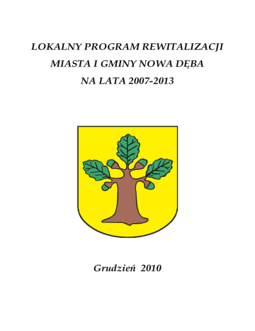 LOKALNY PROGRAM REWITALIZACJI MIASTA I GMINY NOWA DĘBA NA LATA 2007-2013 Grudzień 2010 „Lokalny Program Rewitalizacji Miasta i Gminy Nowa Dęba na lata 2007-2013” Spis treści 1. Charakterystyka obecnej sytuacji na terenie miasta i gminy Nowa Dęba obszary problemowe 1.1. Zagospodarowanie przestrzenne 1.2. Gospodarka 1.3 Sfera społeczna 1.4. Tabela z podstawowymi danymi statystycznymi 1.5. Wyniki badań ankietowych 1.6. Analiza SWOT 2. Nawiązanie do strategicznych dokumentów dotyczących rozwoju przestrzennospołeczno-gospodarczego miasta i gminy Nowa Dęba 55 3. Streszczenie nietechniczne oceny oddziaływania „Lokalnego Programu Rewitalizacji Miasta i Gminy Nowa Dęba na lata 2007-2013” na środowisko 65 4. Założenia programu rewitalizacji 69 4.1. Okres programowania 4.2. Zasięg terytorialny i uzasadnienie 4.3. Podział na projekty i zadania inwestycyjne 4.4. Kryteria wyboru pilotażu i kolejność realizacji 4.5. Oczekiwane wskaźniki osiągnięć 5. Plan finansowy realizacji „Lokalnego Programu Rewitalizacji Miasta i Gminy Nowa Dęba na lata 2007-2013” 109 6. System wdrażania 115 7. Sposoby monitorowania, oceny i komunikacji społecznej 117 7.1. System monitoringu planu rewitalizacji 2 rewitalizowanego obszaru (wyznaczenie 5 granic) „Lokalny Program Rewitalizacji Miasta i Gminy Nowa Dęba na lata 2007-2013” 7.2. Sposoby oceny procesu rewitalizacji 7.3. Sposoby inicjowania współpracy pomiędzy prywatnym i organizacjami pozarządowymi 7.4. Public Relations planu rewitalizacji sektorem publicznym, Załącznik 123 Formularze wniosków o wpisanie zadania społecznego, gospodarczego i przestrzennego do „Lokalnego Programu Rewitalizacji Miasta i Gminy Nowa Dęba na lata 2007 -2013” 3 „Lokalny Program Rewitalizacji Miasta i Gminy Nowa Dęba na lata 2007-2013” ROZDZIAŁ I Charakterystyka obecnej sytuacji na terenie miasta i gminy Nowa Dęba 1.1. Zagospodarowanie przestrzenne Obszary rewitalizacji Obszar przestrzenny dotyczy przede wszystkim położenia gminy, rozwoju jej infrastruktury technicznej, społecznej, kulturalnej i turystycznej. Do rewitalizacji tego obszaru należy zaliczyć działania dotyczące transportu, restrukturyzacji przemysłu, remontów i renowacji budynków. Obszar gospodarczy obejmuje głównie pracodawców, czyli podmioty zarejestrowane w rejestrze REGON. Działania rewitalizacji w tym obszarze dotyczą głównie wspierania przedsiębiorczości oraz innych działań wynikających z programów pomocowych dotyczących rozwoju MSP. Obszar społeczny jest bardzo szeroko pojęty. Dotyczy ochrony zdrowia, pomocy społecznej, edukacji, kultury, porządku publicznego i bezpieczeństwa, a także struktury demograficznej i społecznej ludności, bezrobocia i zatrudnienia, bezpieczeństwa i określenia grup społecznych wymagających wsparcia w ramach programu rewitalizacji. Obszar ten jest bardzo rozbudowany. Dotyczy rozwoju zasobów ludzkich, walki z patologiami społecznymi, zapobieganiu zjawisku bezrobocia czy bezdomności. I. Obszar przestrzenny obejmuje: - działania dotyczące rozwoju infrastruktury technicznej, - działania dotyczące rozwoju transportu, - działania dotyczące remontów i renowacji istniejących zasobów mieszkaniowych, - działania dotyczące budowy nowych mieszkań, - działania dotyczące rozwoju infrastruktury społecznej, kulturalnej i turystycznej, II. Obszar gospodarczy obejmuje: - działania dotyczące wspierania przedsiębiorczości, - działania dotyczące rozwoju turystyki bądź innych sektorów gospodarki lokalnej, - działania dotyczące uruchamiania finansowanych mechanizmów wsparcia (np. lokalny fundusz poręczeń), - inne działania wynikające z programów pomocowych dotyczące rozwoju MSP. III. Obszar społeczny obejmuje: 4 - działania dotyczące rozwoju zasobów ludzkich, - działania dotyczące przeciwdziałania wykluczaniu społecznemu, - działania dotyczące walki z patologiami społecznymi, - działania dotyczące tworzenia równych szans, - działania dotyczące zapobieganiu zjawisku bezrobocia, - działania dotyczące zapobieganiu zjawisku bezdomności, „Lokalny Program Rewitalizacji Miasta i Gminy Nowa Dęba na lata 2007-2013” - działania na rzecz aktywności środowisk dziecięcych i młodzieżowych, - działania dotyczące przekwaterowywania mieszkańców rewitalizowanych terenów, - działania dotyczące uruchamianiu systemów grantów dla organizacji pozarządowych. Najważniejsze zabytki gminy Nowa Dęba Gmina Nowa Dęba leży na terenie dawnej Puszczy Sandomierskiej, toteż w krajobrazie dominują lasy (ponad 2 połowa ze 142 km powierzchni gminy). Możemy tu spotkać lasy grądowe ze starymi okazami dębów szypułkowych, jesionów, chociaż dominuje wśród nich sosna. Najciekawszym przyrodniczo i krajobrazowo, są tereny stawów w Budzie Stalowskiej, które proponowane są do objęcia projektem Unii Europejskiej Natura 2000 - ochrony ostoi przyrodniczych o znaczeniu międzynarodowym. Powodem do wpisania tego terenu do wspomnianego programu jest występowanie czapli purpurowej. Obok niej na terenie samych stawów (ponad 600 ha) i otuliny leśnej (100 ha) zamieszkuje ponad 180 gatunków ptaków, wśród których na uwagę zasługują jeszcze: orzeł bielik, czapla biała i siwa, bocian czarny, perkoz. Kolejnym atutem tego krajobrazu jest szata roślinna. W okolicy stawów znajduje się wysunięte najdalej w Europie na południowy wschód stanowisko zimoziołu. W Budzie zachował się też pałacyk myśliwski należący przed wojną do Tarnowskich, zbudowany w stylu drewnianej willi letniskowej. Teren ten, jak też tereny lasów w całej gminie nadają się do uprawiania turystyki rowerowej, a także do turystyki fotograficznej. Przy okazji można zobaczyć obiekty wpisane do rejestru zabytków: zespół kościoła parafialnego w Chmielowie (lata 20. XX w.), zespół kościoła parafialnego w Tarnowskiej Woli (lata 20. XX w.), dwór „Belweder” i pozostałości parku dworskiego