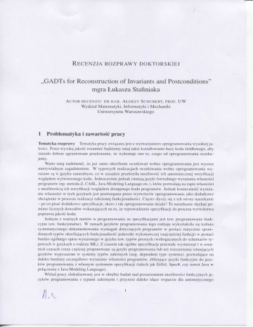 Jak wynika z przeprowadzonego omowienia, praca zawiera trudne i istotne dla dziedziny konstruowania poprawnego oprogramowania wyniki. Niew^tpliwie rezultaty te s^ oryginalne i swiadczq o dostatecznej sprawnosci kandydata w opracowywaniu modeli matematycznych dla zjawisk wystgpujqcych