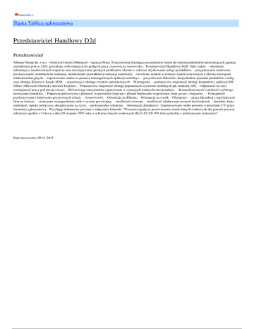 Przedstawiciel Handlowy D2d - Śląska Tablica ogłoszeniowa