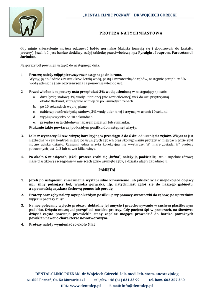 instrukcja postępowania - dental clinic poznań dr wojciech górecki