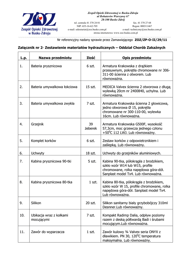 Załącznik nr 2- Zestawienie materiałów - ZOZ Busko