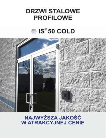 DRZWI STALOWE PROFILOWE ® IS 50 COLD NAJWYŻSZA JAKOŚĆ W ATRAKCYJNEJ CENIE SYSTEM IS 50 COLD APROBATY, DOPUSZCZENIA I BADANIA Firma Impet Systems oferuje kompleksowe rozwiązania techniczne w zakresie nowoczesnych i trwałych rozwiązań dla ślusarki budowlanej. System dopuszczony do obrotu na postawie: ® IS® 50 COLD to system autorskich profili, stworzonych z myślą o potrzebach odbiorców oraz ich wysokich wymaganiach. ź Aprobata Techniczna AT-15-87912/2011 ź Atest Higieniczny HK/B/1412/01/2011 ź Deklaracja Zgodności numer IS-11-2011 Profile wraz z pozostałymi elementami systemu służą do produkcji drzwi, okien i ścianek wykorzystywanych w budownictwie mieszkalnym wielorodzinnym, zamieszkania zbiorowego, halach przemysłowych, pomieszczeniach biurowych przedsiębiorstw oraz w obiektach użyteczności publicznej. SKŁAD SYSTEMU INFORMACJE TECHNICZNE ź profile konstrukcyjne wykonane z blachy ze ź długość standardowa profili stalowych IS stali nieocynkowanej o długości 6,6m ź listwy przyszybowez blachy ze stali konstrukcyjnej ocynkowanej o szerokości 15, 20, 25, 30 i 35 mm oraz długości standardowej 6,6 m ź uszczelki przymykowa, przyszybowa, bezpieczna oraz progowa wykonane z EPDM ź wkręty zatrzaskowe dostępne luzem bądź w magazynkach po 10 sztuk ® ź IS Wkrętarka z głowicą ź oprogramowanie konstruktorsko- kalkulacyjne IS® TUBES ® ź IS FITTINGS dopasowane do systemu wynosi 6,6 m ź grubość ścianki profili stalowych IS to 1,5 mm ź głębokość budowlana profili stalowych IS wynosi 50 mm ź dostępna szerokość profili stalowych IS to 35, 45 i 65 mm ź najwęższa z możliwych szerokości ramy ościeżnicy 35 mm, przy zastosowaniu standardowego zaczepu elektromagentycznego ź możliwość zastosowania profilu ramy skrzydła o szerokości 45 mm, przy zastosowaniu zamka z dornmass 30 mm i okucia o szerokości szyldu do 32 mm Producent Impet Systems Sp. z o.o. ul. Owsiana 21 43-316 Bielsko-Biała www.impetsystems.pl [email protected]
