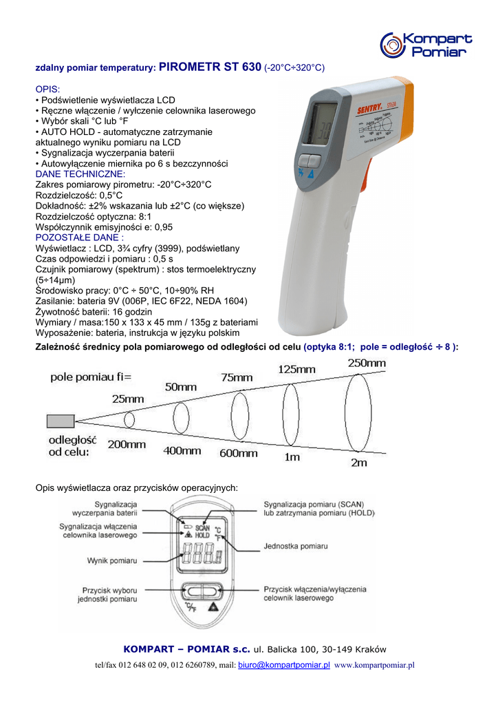 zdalny pomiar temperatury: PIROMETR ST 630 - Kompart
