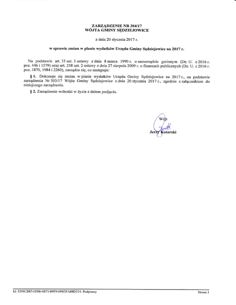 zARzĄDzENIE l\IR 304/17 - Urząd Gminy Sędziejowice