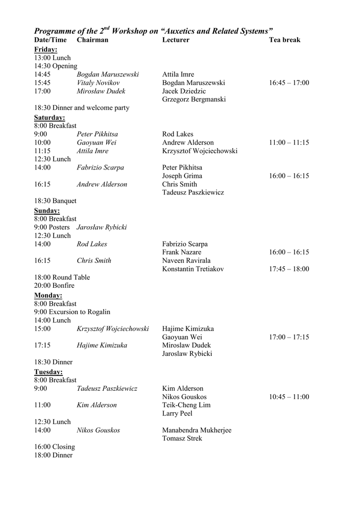 Programme of the 2 Workshop on “Auxetics and Related Systems”