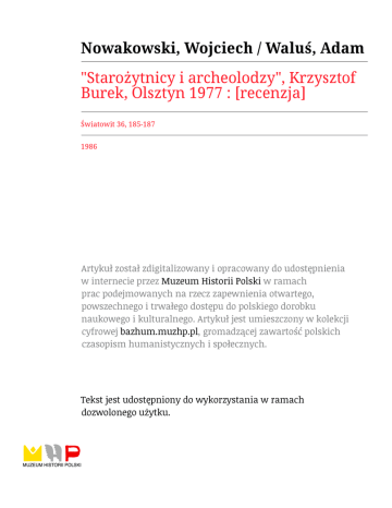 KRZYSZTOF BUREK, STAROŻYTNICY I ARCHEOLODZY