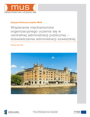 Zeszyty Robocze projektu MUS Wspieranie mechanizmów organizacyjnego uczenia się w centralnej administracji publicznej – doświadczenia administracji szwedzkiej Dawid Sześciło 1 Raport przedstawia wyniki wizyty studyjnej zrealizowanej w ramach projektu pt. "Ministerstwa Uczące Się - zestaw narzędzi diagnozy i wsparcia mechanizmów organizacyjnego uczenia się kluczowych dla polityk publicznych opartych na dowodach". Projekt jest współfinansowany przez Unię Europejską w ramach Europejskiego Funduszu Społecznego. Niniejszy materiał ma charakter roboczy. Będziemy wdzięczni za wszelkie krytyczne uwagi i komentarze. Prosimy je kierować bezpośrednio do autora tomu – Dawida Sześciło ([email protected]) lub na adres kierownika merytorycznego projektu - dr. Karola Olejniczaka ([email protected]). Ostateczna wersja tego materiału zostanie opublikowana w książce, w ramach serii wydawniczej projektu MUS. Cytując ten materiał prosimy podawać następujące źródło: Sześciło D. (2012) "Doświadczenia administracji szwedzkiej" w: Mazur S., Płoszaj A. (red.) Wspieranie mechanizmu uczenia się w organizacjach publicznych. Doświadczenia międzynarodowe, Warszawa: Scholar Copyright by Kancelaria Prezesa Rady Ministrów, 2012 r. Zdjęcie na okładce: Siedziba rządu Szwecji (fot. Paweł Flato). 2 Spis treści 1 SPECYFIKA SYSTEMU CENTRALNEJ ADMINISTRACJI PUBLICZNEJ W SZWECJI W KONTEKŚCIE ORGANIZACYJNEGO UCZENIA SIĘ ...................................................................................................... 4 2 3 1.1 INFORMACJE OGÓLNE ............................................................................................................. 4 1.2 RZĄD .................................................................................................................................. 5 1.3 AGENCJE ............................................................................................................................. 6 1.4 PODSUMOWANIE. SCHEMAT ORGANIZACJI ADMINISTRACJI RZĄDOWEJ W SZWECJI ............................... 9 WYBRANE MECHANIZMY, METODY I NARZĘDZIA ORGANIZACYJNEGO UCZENIA SIĘ .............. 10 2.1 KOLEKTYWNE DECYDOWANIE W RAMACH RZĄDU ........................................................................ 10 2.2 KOMITETY BADAWCZE .......................................................................................................... 12 2.3 OTWARTY DOSTĘP DO SŁUŻBY CYWILNEJ ................................................................................... 15 2.4 INDYWIDUALIZACJA WARUNKÓW ZATRUDNIENIA ........................................................................ 16 2.5 SZKOLENIA ZORIENTOWANE GŁÓWNIE NA ROZWIJANIE „MIĘKKICH” UMIEJĘTNOŚCI I KWALIFIKACJI ......... 19 2.6 MERYTORYCZNA OCENA RAPORTÓW ........................................................................................ 20 PODSUMOWANIE ................................................................................................................... 21 3.1 WSPIERANIE MECHANIZMÓW UCZENIA SIĘ W RAMACH ORGANIZACJI............................................... 21 3.2 STWARZANIE/ISTNIENIE SPRZYJAJĄCYCH WARUNKÓW W OTOCZENIU ORGANIZACJI ............................. 22 3.3 WNIOSKI DLA POLSKIEJ ADMINISTRACJI ..................................................................................... 23 BIBLIOGRAFIA ................................................................................................................................. 25 ZAŁĄCZNIK 1.................................................................................................................................... 27 ZAŁĄCZNIK 2.................................................................................................................................... 32 ZAŁĄCZNIK 3.................................................................................................................................... 36 ZAŁĄCZNIK 4.................................................................................................................................... 40 3 1 Specyfika systemu centralnej administracji publicznej w Szwecji w kontekście organizacyjnego uczenia się 1.1 Informacje ogólne Centralna administracja w Szwecji składa się z dwóch zasadniczych segmentów: a) rządu jako systemu organów odpowiedzialnych za kreowanie polityk publicznych, w tym przygotowanie projektów zmian prawnych. Można określić ten segment jako administrację na rzecz rządzenia; b) systemu agencji realizujących politykę wypracowaną przez rząd oraz prawo uchwalane przez jednoizbowy parlament (Riksdag). Tworzą one segment administracji wykonawczej (Izdebski, Kulesza; 2003), która przynajmniej na poziomie założeń teoretycznych nie wpływa na kierunki polityki państwa, a koncentruje się jedynie na jej wdrażaniu. W ogólnym zarysie model szwedzkiej administracji centralnej odzwierciedla zatem postulat rozdzielenia sfery strategicznej i operacyjnej, czy inaczej mówiąc, rządzenia i implementacji. Jest to praktyczna realizacja charakterystycznego dla nowego zarządzania publicznego hasła, że administracja powinna bardziej „sterować, a nie wiosłować” (Osborne, Gaebler; 2005), tj. w jak najmniejszym stopniu zajmować się bezpośrednim wykonywaniem zadań publicznych, a raczej skupić się na kształtowaniu polityk publicznych, długookresowym planowaniu i zarządzaniu strategicznym. Sfery administracji na rzecz rządzenia i administracji wykonawczej różnią się nie tylko charakterem zadaniem, ale także liczebnością. Według danych na koniec 2010 r. (dane za 2011 r. nie są jeszcze opracowane) w Szwecji działało aż 387 agencji wykonawczych, przy czym ich liczba systematycznie spada. W 2006 r. było ich o blisko 100 więcej. Dla porównania ministerstw jest zaledwie 14, włączając w to Urząd Premiera (Regeringskansliet 2011). Podobnie przedstawia się różnica w zatrudnieniu. Minis