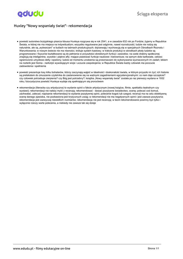 Edudu.pl - Huxley "Nowy wspaniały świat"