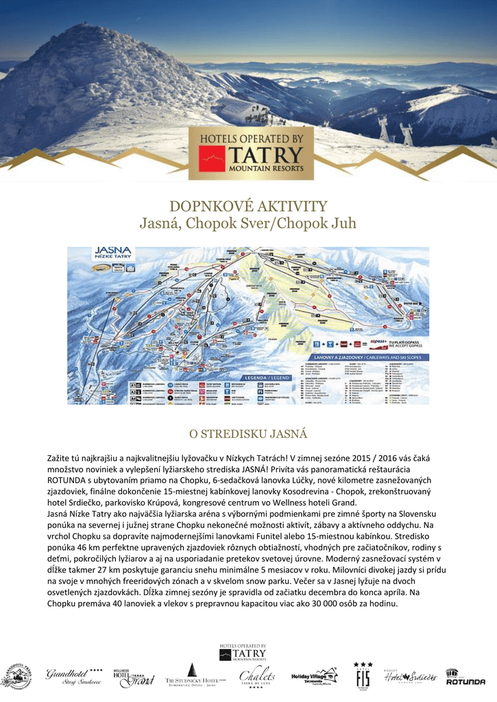 DOPNKOVÉ AKTIVITY Jasná, Chopok Sver/Chopok Juh