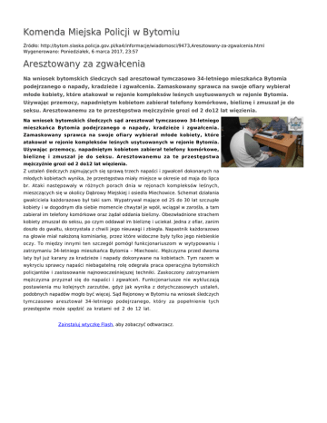 Komenda Miejska Policji w Bytomiu Aresztowany za zgwałcenia