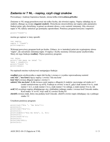 Zadania nr 7 NL - napisy, czyli ciągi znaków