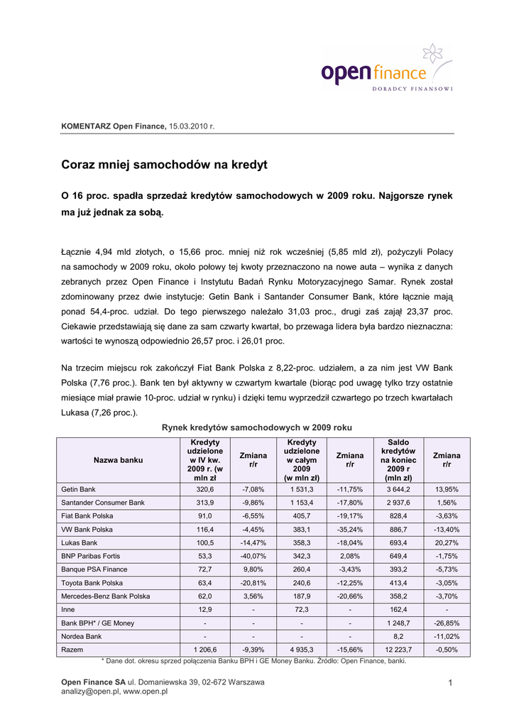 Coraz mniej samochodów na kredyt_KOMENTARZ_150310