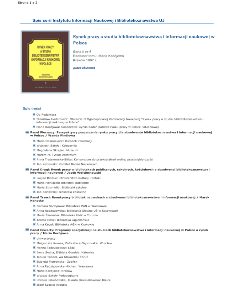 Spis serii Instytutu Informacji Naukowej i Bibliotekoznawstwa UJ