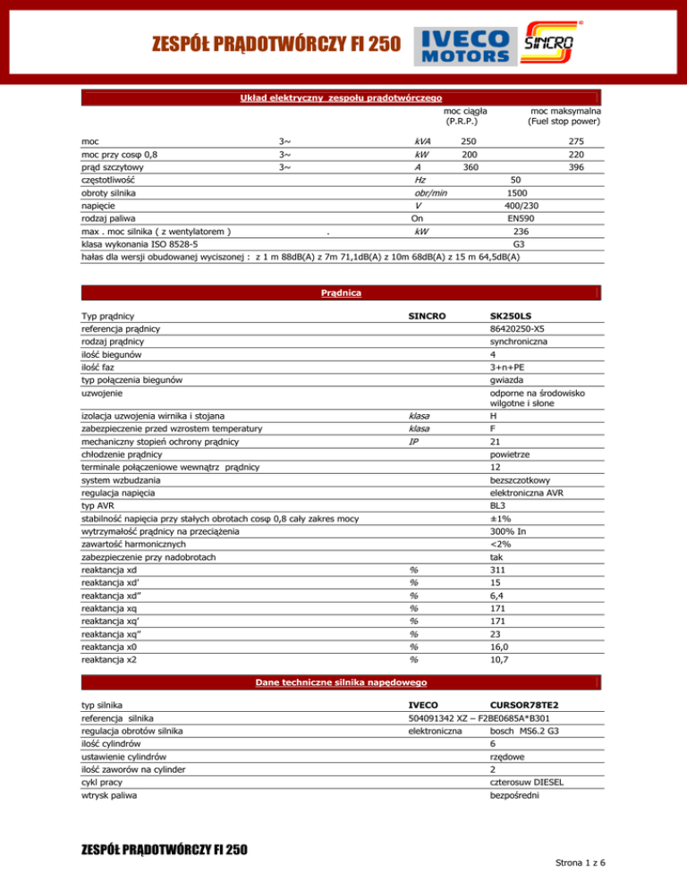 ZESPÓŁ PRĄDOTWÓRCZY FI 250