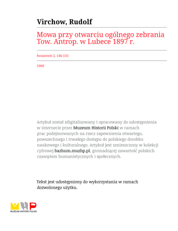 RUCH NAUKOWY. PROF. RUDOLF VJRCHOW. Mowa przy otwarciu ogólnego zebrania Tow. Antrop. w Lubece 1897 r.*) Towarzystwo nasze w szerokich ramach badań antropologicznych, wytrwale i jak sądzę, z dobrym skutkiem, uwzględniło zadanie narodowościowe, zadanie które zresztą także i gdzieindziej córa,z więcej wysuwa się naprzód. Uważaliśmy za nasz pierwszy i główny obowiązek, zwracać uwagę rodaków naszych na zabytki krajowe i zachęcić ich do poszukiwania, oraz zachowywania naszych skarbów ojczystych. Kiedy rozpoczynaliśmy naszą pracę (w r. 1869-ym), panował w kołach, zajmujących się antropologią prąd inny: uwaga powszechna była zwrócona na zagadnienia ogólne; miano rozmaite, ogromnie śmiałe pomysły, mniemano, że można wyjaśnić, przez tysiące lat nierozwiązaną кwestyę pochodzenia człowieka wogóle i j e g o stosunku do zwierząt ssących, a mianowicie do małp; domyślano się istnienia osobnych ras przeddziej owych, które stały bliżej świata zwierzęcego: badano najdawniejsze szczegóły rozwoju ludów europejskich, przedewszystkiem zaś to, co w y d o b y ł y na jaw badania mieszha.ń palowych—i to wszystko, obok czysto paleontologicznych poszukiwań, dotyczących czasów renifera i mamuta. zajmowało zupełnie umysły. Dość przypomnieć kongresy międzynarodowe archeologii i antropologii przeddziej owej, które odbywały się w owych czasach. Nieprzestaliśmy i teraz jeszcze zajmować się temi rzeczami, ale okazało się potrzebniejszem uwzględnienie tych zagadnień, do których wyjaśnienia my, jako Niemcy, szczególnie jesteśmy powołani, w przeciwieństwie do innych, któremi powinni zająć się badacze innych narodów. Także pod tym względem zaszła wielka zmiana. Kiedy występowaliśmy na widownię, zajmowano się w Niemczech wszędzie przeważnie badaniami liistorycznemi. Nasze wystąpienie wywołało wśród historyków pewne niezadowolenie. Mniemali oni, że zamierzamy wtargnąć na ich terytoryum. Sprawa wyjaśniła się niebawem. Obecnie rzecz ma się raczej tak, że historycy zapuszczają się nieraz w dziedzinę, która nie jest wcale historyczną, lecz przeddziejową. My jednak nie jesteśmy tak drażliwi, jak właściwi historycy, którzy przez pewien czas brali nam za złe, że zajmujemy się niekiedjr badaniami, dotyczącemi epok historycznych. Zakreślić tu granicy niepodobna. Mówiłem o tem już tylokrotnie na ogólnych zebraniach tego Towarzystwa, że nie potrzebuję dziś tem się zajmować. To tylko zaznaczę raz jeszcze, że my, badacze przeddziej owi, tam uznajemy granicę, gdzie niema już dokumentów pisanych. Samej tradycyi, występującej pod postacią podań, bajek i innych, często bardzo niejasnych opowiadań, nie możemy uznawać za historyę. Tradycya opiera się na podstawie historycznej, ale wyraźnie rozpo*) Correspond. BI. d. d. Gr. f Antr. Etn. u. Urg. r. 1897, str. 67. M OWA W LUBECE. 147 znać zwykle już jej nie można. My żądamy, aby to, co ma być historyczne, przedstawiało się też odpowiednio, aby miało wyraźną, postać i mogło dowieść swego charakteru historycznego. Ponieważ jednak jesteśmy nietylko badaczami czasów przeddziejowych, lecz i antropologami, i nie zajmujemy się tylko tym człowiekiem, którego zagrzebano. a mniej jeszcze tylko tym człowiekiem, którego pogrzebano przed tysiącami lat, lecz również człowiekiem współczesnym, to. też rzeczywiście wkraczam y mocno w zakres historyi, zajmujemy się przy sposobności historyą zupełnie świeżą, historyą teraźniejszości. Uczyniliśmy to, rozszerzając badania nasze w wielkich rozmiarach na właściwości fizyczne pokolenia obecnego. Są to badania, do których końca jeszcze daleko, o których jednak możemy powiedzieć, że zrobiły nadzwyczajne postępy. Krótka ta uwaga starczy za wyjaśnienie, dlaczego nie uważamy się za powołanych do szczegółowego omawiania tego, co zawierają rzeczywiste dokumenty. Jeżeli uwzględniamy je przy sposobności, to nie zamierzamy jednak bynajmniej wkraczać w dziedzinę rzeczywistej historyi. Muszę przytem zaznaczyć, że nie zawsze łatwo znaleźć granicę, od której rozpoczyna się jedna lub druga dziedzina. Pozwólcie mi, Panowie, objaśnić to na szczególnie interesującym nas przykładzie, na przykładzie, dotyczącym ziemi i okolicy, w której dziś się znajdujemy. Ше potrzebuję dopiero opowiadać, że celem każdego poszukiwania tego rodzaju jest co najmniej j\iż oznaczenie czasu, do którego rzecz omawiana się odnosi. Rzeczywiste zrozumienie rzeczy zaczyna się dopiero z chwilą, kiedy określiliśmy jej stanowisko chronologiczne. Sprawa ta przedstawia się wprawdzie bardzo rozmaicie, zależnie od tego, czy zdołamy oznaczyć pewien rok lub przynajmniej krótszy okres czasu, czy też tylko wielkie okresy. Wiemy przecież, że paleontologia i. geologia znają także okresy czasowe, ale geologowie nie umieją nawet powiedzieć, czy taka epoka obejmowała tysiąc, dziesięć tysięcy, czy może nawet sto tysięcy łat; stosownie do swej bujniejszej lub mniejszej fantazyi. może każdy epoki takie skrócić lub rozszerzyć w nieskończoność. Próbowano także ścisłego określenia czasu w okresach przeddziejowych, ale próby te wykazywały zawsze bezowocność takich starań, i porzucono je znowu. Tak np. zastanawiano się przez pewien czas, kiedy o d k u t o mieszkania palowe w Szwajcaryi nad rośnięciem torfowisk i nad tem, czy nie możnaby z grubości i wysokości podkładów torfu robić wniosków o długości czasu, którego potrzebowały do swego powstania i do określenia epoki, kiedy przedmioty, znajdowane w głębi torfowisk tam się dostały. Przekonano się powoli, że torf nie jest materyałem stałym, któryby zatrzymywał rzeczy na swojej powierzchni, że raczej przedmiotj', leżące ' na jego powierzchni, w przebiegu wieków zmieniają swe miejsce, tak, że możnaby mówić o ich wędrówce, gdyby byty żywe. Wędrują one z gór
