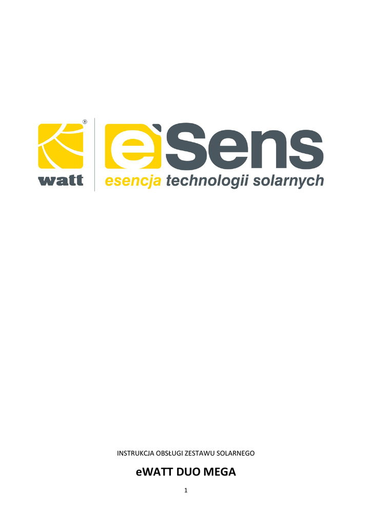 INSTRUKCJA OBSŁUGI ZESTAWU SOLARNEGO eWATT DUO MEGA 1 Spis treści: 1. Schematy działania oraz składy zestawu z kolektorami CPC 9................................................................... 4 1.1 Schemat ogólny zestawu WATT DUO MEGA ............................................................................................. 4 1.2 Elementy zestawu WATT DUO MEGA ........................................................................................................ 5 2. Opis głównych elementów wchodzących w skład zestawu ........................................................................ 6 2.1 WATT CPC9 ................................................................................................................................................. 6 2.2 Bufor wężownicowy podwójny SISS 900/200. ........................................................................................... 9 2.3 Regulator .................................................................................................................................................. 10 2.4 Grupa solarna ........................................................................................................................................... 11 2.5 Naczynie wzbiorcze .................................................................................................................................. 13 2.6 Zestaw do podłączenia grupy solarnej .................................................................................................... 13 2.7 Zabezpieczenie zbiornka dwufunkcyjnego ............................................................................................... 14 2.8 Płyn do kolektorów WATT CPC – 20l. ....................................................................................................... 15 2.9 Instrukcja montażu uchwytu dachowego ................................................................................................ 16 2.10 Instrukcja montarzu konstrukcji wolnostojącej ....................................................................................... 19 3. Po wykonaniu instalacji autoryzowany instalator / klient powinien sprawdzić poprawność wykonania następujących czynności:........................................................................................................ 22 3.1. Odpowiedni dobór rurek do instalacji oraz sposób ich podłączenia: ...................................................... 22 3.2. Odpowiednie zabezpieczenie przed zapowietrzaniem. ........................................................................... 22 3.3. Odpowiednia izolacja instalacji ................................................................................................................ 22 3.4. Szczelność instalacji.................................................................................................................................. 22 3.5. Sprzęt do napełniania i odpowietrzania................................................................................................... 22 3.6. Sposób zabezpieczenia kolektorów przed promieniowaniem słonecznym w czasie instalacji ............... 23 3.7. Sprawdzić ustawienia przepływu ............................................................................................................. 23 3.8. Sprawdzić jakość płynu............................................................................................................................. 23 3.9. Sprawdź czy zastosowano oryginalne naczynia ....................................................................................... 23 2 Szanowni Państwo, Dziękujemy serdecznie za podjęcie decyzji o zakupie promocyjnego zestawu solarnego eWATT DUO MEGA. Zestaw z kolektorami próżniowymi WATT CPC 9L+ został zaprojektowany z uwzględnieniem warunków klimatycznych panujących w naszej szerokości geograficznej. Kolektor płaski zastosowany w zestawach charakteryzuje się wysoką absorpcją oraz minimalnymi stratami ciepła. Zestaw zapewnia dzięki temu wysoką sprawność energetyczną o każdej porze roku. Kolektor może być zamontowany na każdym dachu. Poniższa instrukcja przedstawia jedynie podstawowe elementy zestawu wraz z krótkim opisem. Pełna instrukcja montażu znajduje się na stronie www.watt.pl oraz została dostarczona Państwa instalatorowi. Prosimy o skorzystanie z usług doświadczonych firm instalatorskich, które dokonają montażu zestawu zgodnie z wytycznymi projektowymi stosownie do Państwa wymagań. 3 1. Schematy działania oraz składy zestawu z kolektorami CPC 9L+ 1.1 Schemat ogólny zestawu eWATT DUO MEGA 4 1.2 Elementy zestawu eWATT DUO MEGA Symbol * Nazwa Ilość 01-8403 Kolektor słoneczny WATT CPC9L+ 8 07-0203 Bufor wężownicowy podwójny SISS 900/200 1 03-1409 Uchwyt dachowy aluminiowy - IV 2 03-2409 Konstrukcja wolnostojąca aluminiowa dla WATT CPC9 - IV 2 06-0130 Płyn do kolektorów e’SOL 20l 2 05-1010 Złączka kolektorowa zaciskowa 15 mm 12 06-0002 Złączka redukcyjna zaciskowa 22mm/15mm 4 05-1011 Zaślepka boczna zaciskowa 15mm/15mm 2 05-1020 Zaślepka ochronna boczna 2 06-0080 e360 1 06-0112 Grupa solarna podwójna 2-15 l/min. 1 06-0147 Zestaw do podłączenia podwójnej grupy solarnej ze zbiornikiem 1 06-0206 Naczynie wzbiorcze do kolektorów 100 litrów 1 06-0611 Zawór trójdrogowy przełączający ¾’’ GW 1 06-0404 Złączka do naczynia wzbiorczego 1’’ 1 06-2003 Otulina solarna 9x22 (w m.b.) 40 06-2101 Izolacja na złączki do kolektorów 12 * Konstrukcja wolnostojąca aluminiowa jest elementem zestawu WATT DUO MEGA KWS 5 2. Opis głównych elementów wchodzących w skład zestawu 2.1 WATT CPC9L+ „Sercem” zestawów eWATT DUO MEGA są kolektory próżniowe CPC 9L+. Kolektory te stanowią jedno z najnowocześniejszych rozwiązań technicznych w dziedzinie technik solarnych. Próżnia zalana szkłem w kształcie dwuściennej rury gwarantuje doskonałą izolacyjność w k